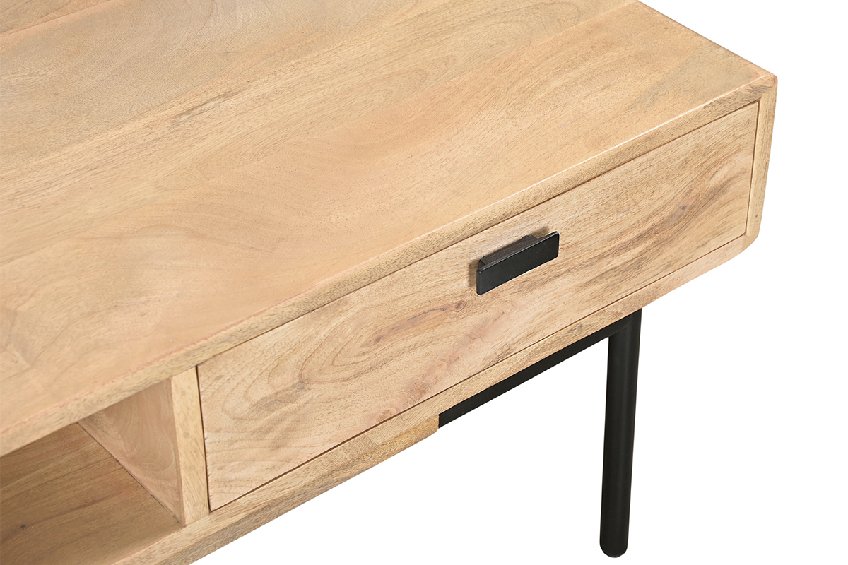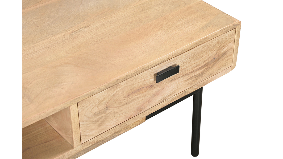 Matières : manguier massif, panneaux de fibres de bois et métal