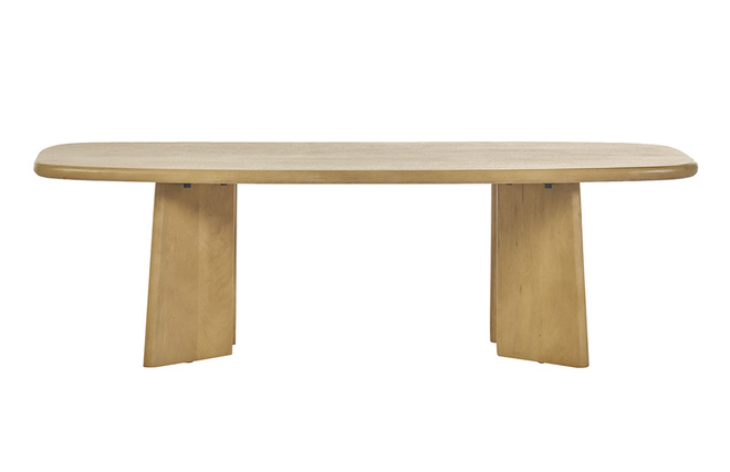 La table basse rectangulaire SOTA se distingue par son plateau aux bords arrondis, qui apporte une touche de douceur et de fluidité, contrastant avec ses pieds robustes aux lignes droites. La structure en bois de manguier massif confère une solidité durable et une beauté intemporelle, mettant en valeur les veinures et nuances naturelles du bois. Ce choix de matériau noble fait de chaque table une pièce unique, ajoutant du caractère et du charme à votre salon.