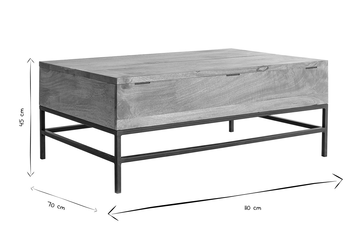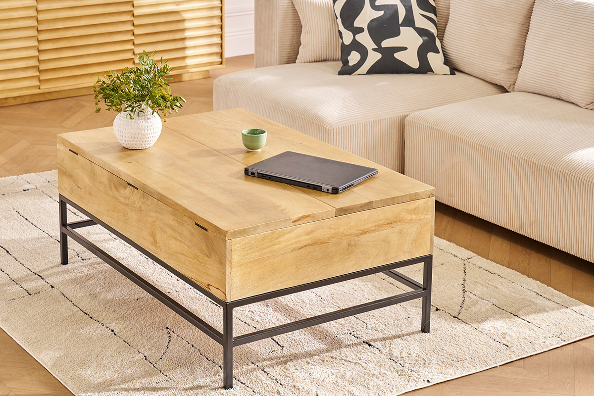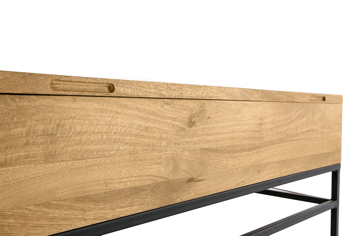 En effet, conçue entièrement en manguier, cette table basse en bois dispose d'une couche de vernis pour la protéger mais également pour lui apporter une finition parfaite. L'association du bois et du métal offre un look très industriel qui en impose. Sans aucun doute, cette table basse comblera vos espérances et séduira vos amis.