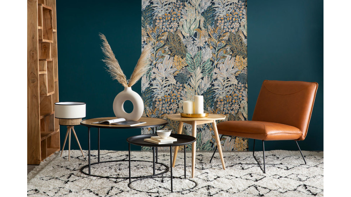 Avec son plateau finition chêne et son piètement métallique tout en courbes, cette table basse affiche un style indus' délicat. La finition du plateau apporte un aspect chaleureux à l'ensemble. Mais c'est dans son contraste avec la base en métal que l'on retrouve tout ce qui fait le charme de cette table. Au plateau massif répond harmonieusement la finesse du pied. Le résultat est élégant et permet d'offrir au salon, une touche déco industrielle tout en subtilité.