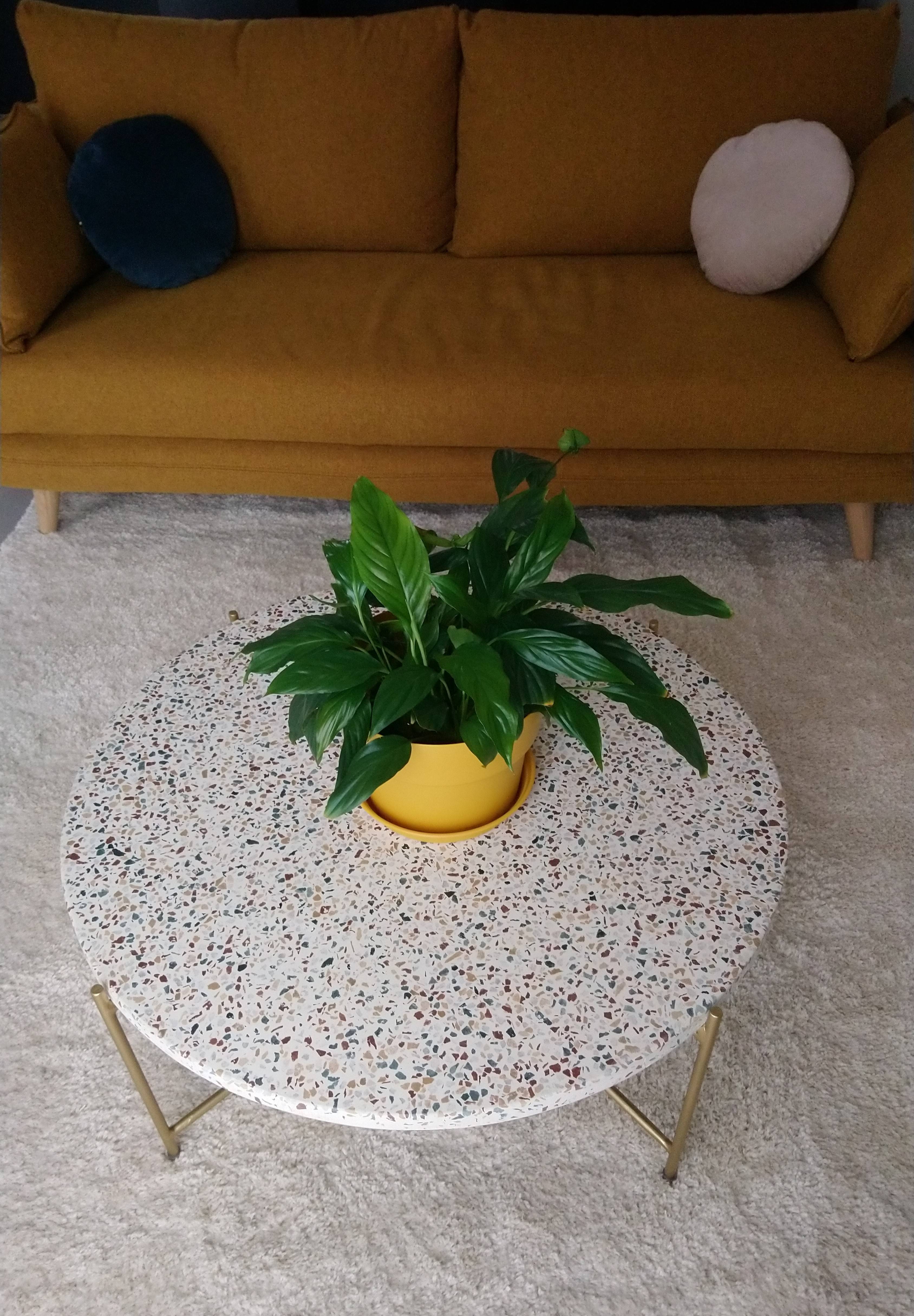 Matières : structure en métal doré et plateau en terrazzo