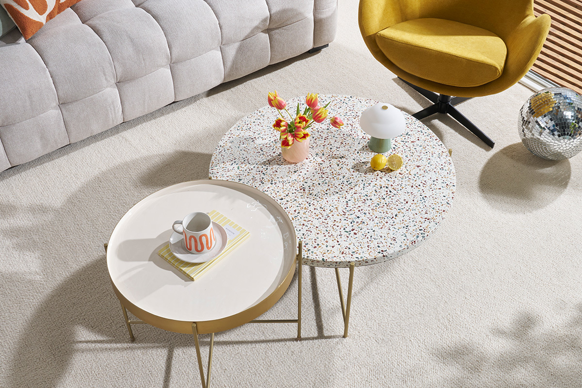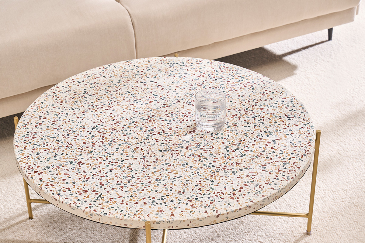 Opération charme dans une version XS ! Pour compléter votre salon et former des duos ou trios 100% déco, les tables basses et d'appoint en terrazzo MEZZO se déclinent dans des versions plateau ronds D55 cm et D40 cm. On imagine autant ces petites tables design disposées sur un tapis aux côtés du canapé, que dans une chambre à coucher pour former d'originales tables de chevet !