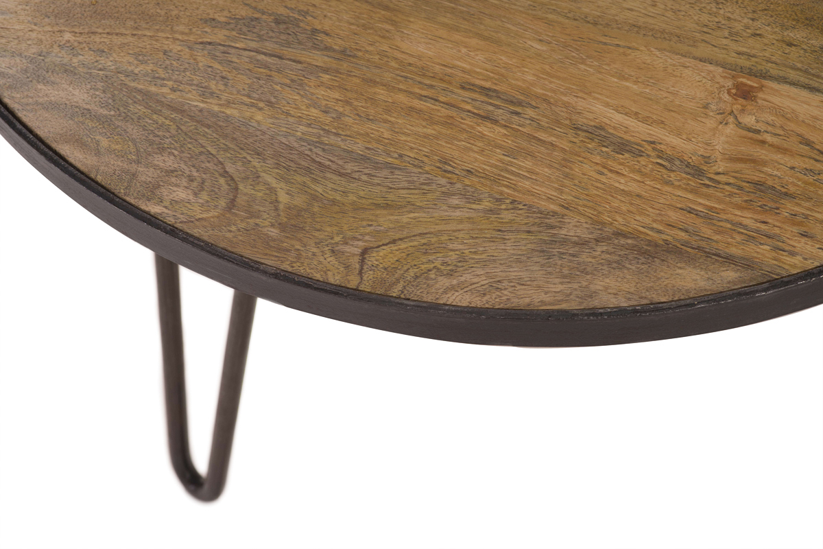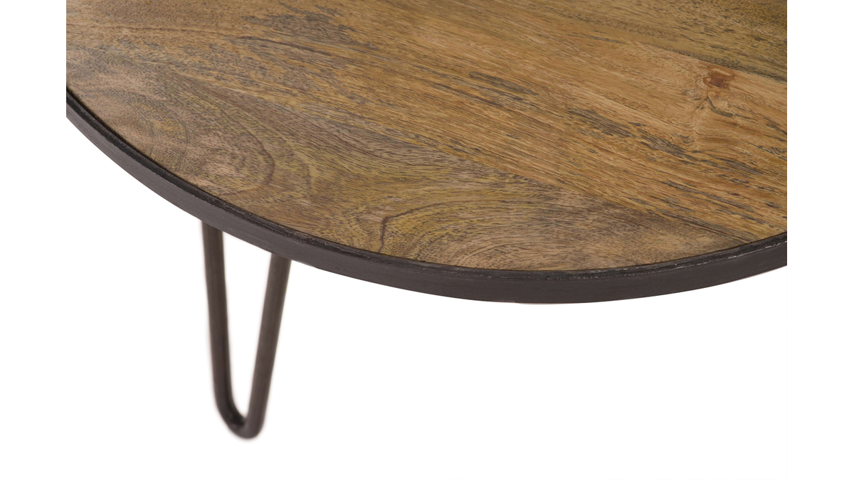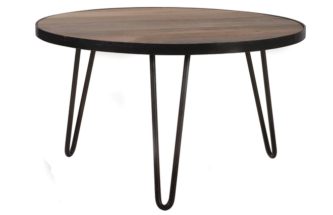 Simple en apparence, cette table en bois a pourtant beaucoup d'atouts. Son plateau est en manguier. Ce bois est nuancé, ce qui a pour effet un rendu très joli. De plus, il est très résistant. Les pieds de cette table basse ronde au look industriel sont des "airping legs", des pieds en épingles, à la forme résolument vintage et très aérienne ! Elle pourra également s'allier à merveille avec la table 50 x 30 cm de la même collection, pour un effet tables gigognes tendance.