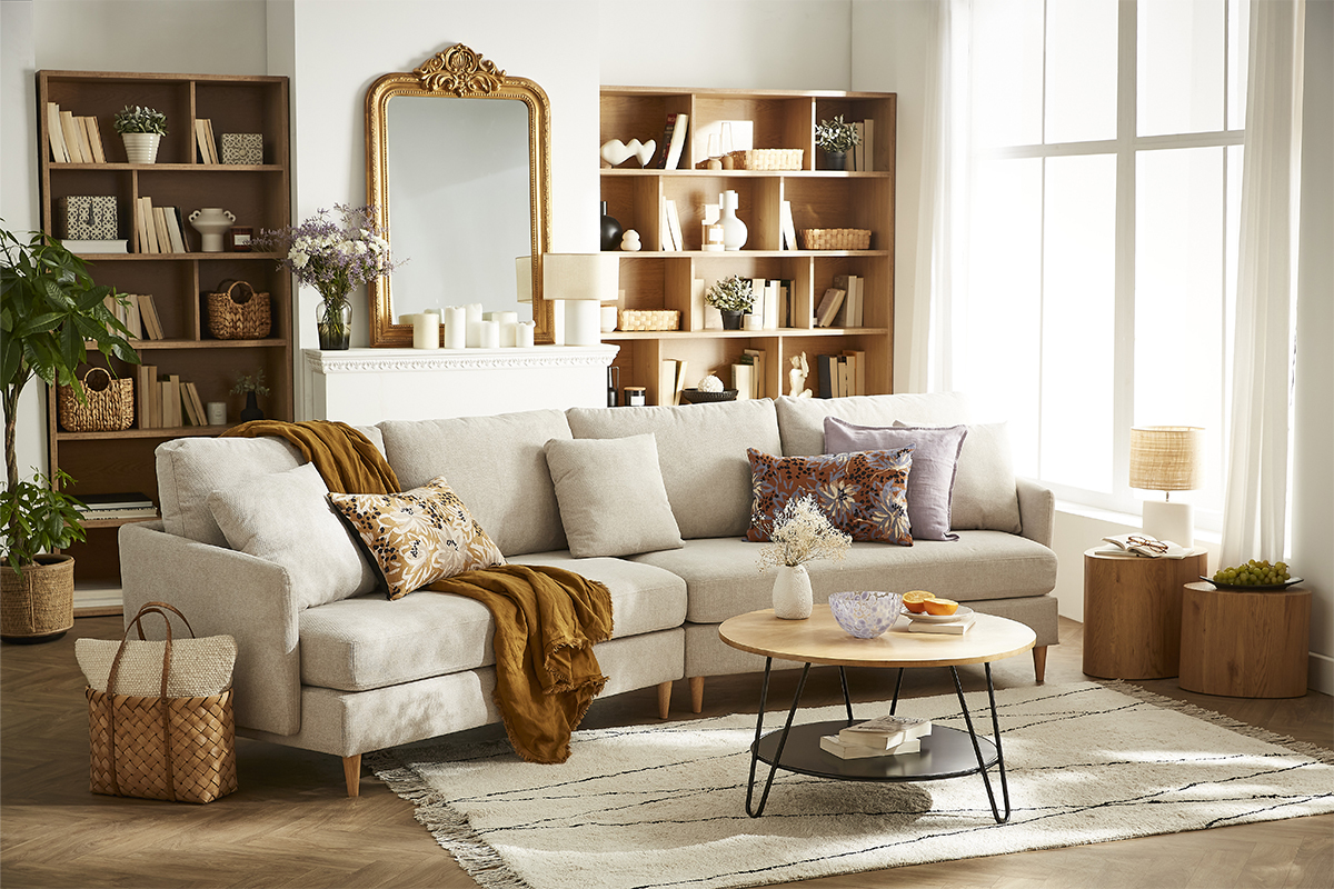 Instaurez une ambiance chaleureuse et cocooning dans votre pièce de vie : un plateau, des bougies, une plante... Autant d'accessoires qui agrémenteront votre table basse en bois naturel. Et pour sublimer PRIYA : rien de mieux qu'un tapis moelleux aux teintes naturelles.