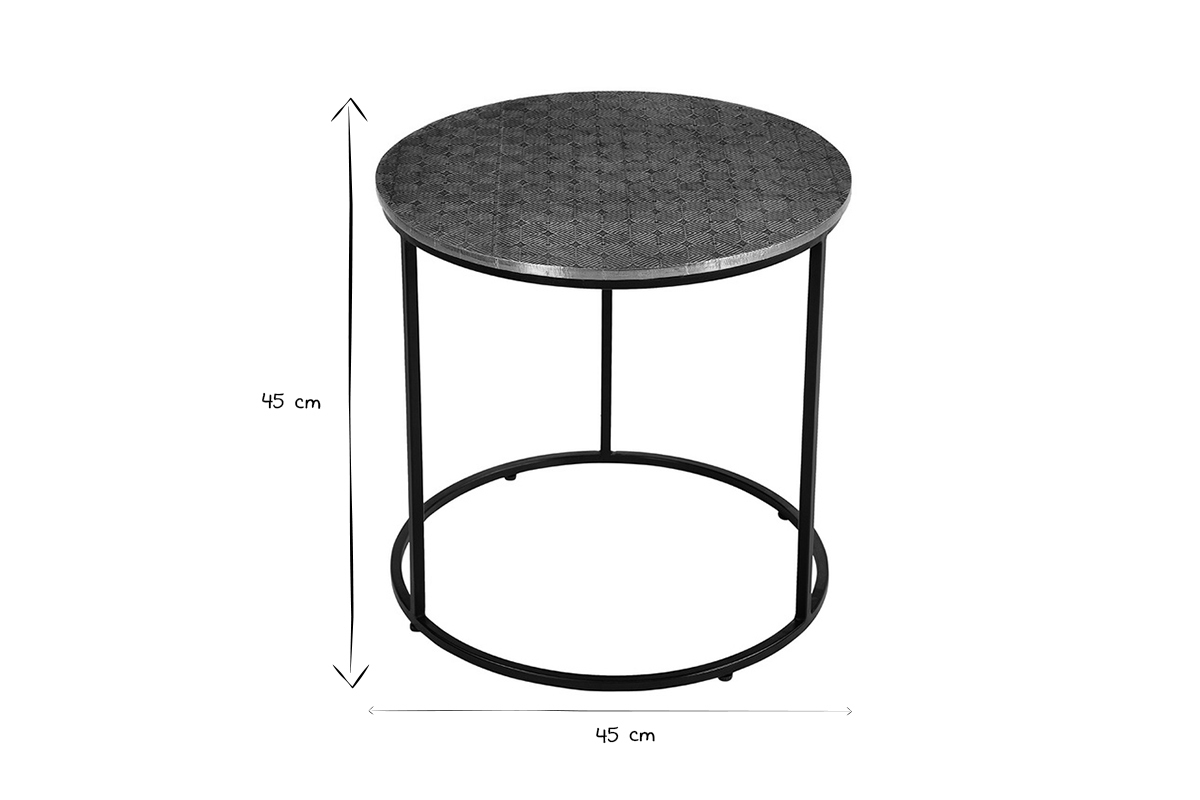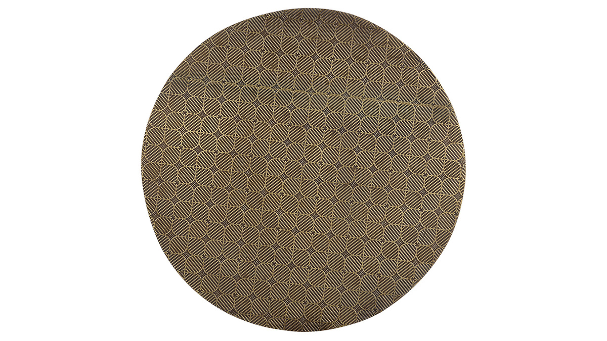 Cette petite table ronde affiche un look original et raffiné. Son plateau en panneaux de fibres de bois est recouvert d'une couche de laiton frappé. Ce matériau, apprécié pour son aspect doré brut, a été travaillé artisanalement. Le motif géométrique dessiné dessus offre un rendu graphique unique. Ce plateau rond décoratif est associé à un piètement en métal fin faisant de la table basse FLOOR une pièce de mobilier pleine de charme.