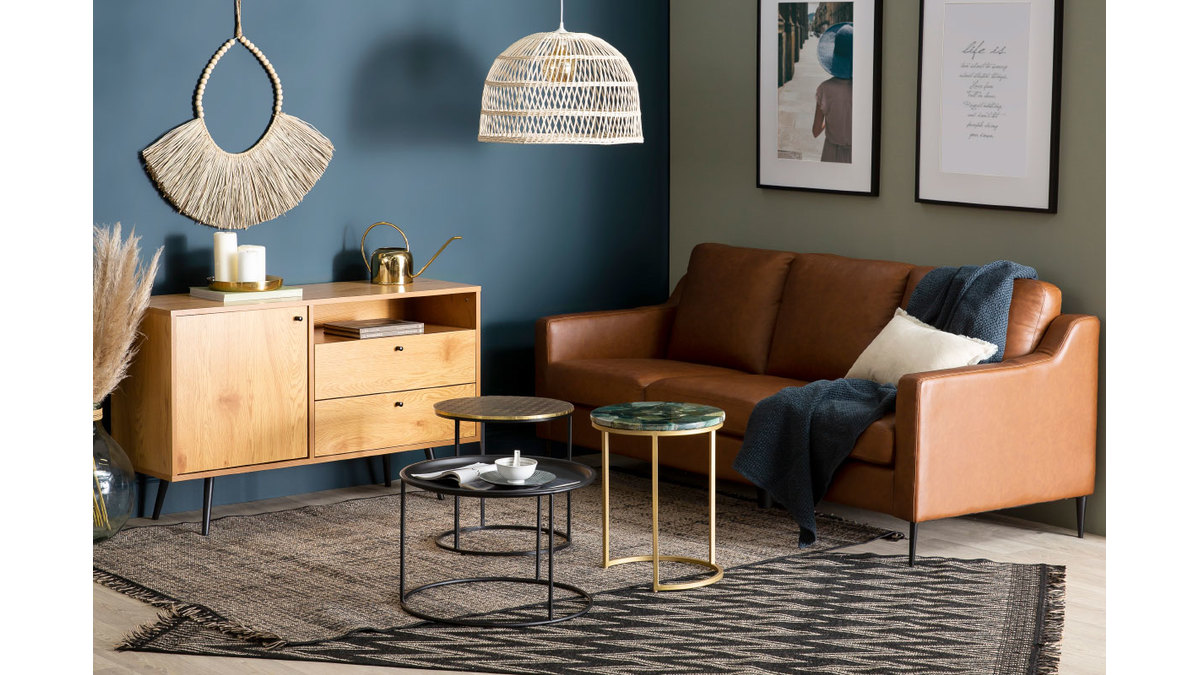 Matières : panneaux de fibres de bois, laiton frappé et métal
