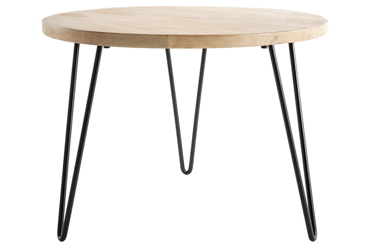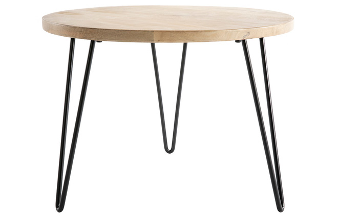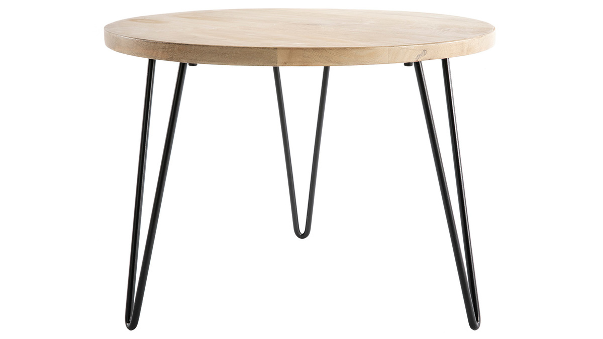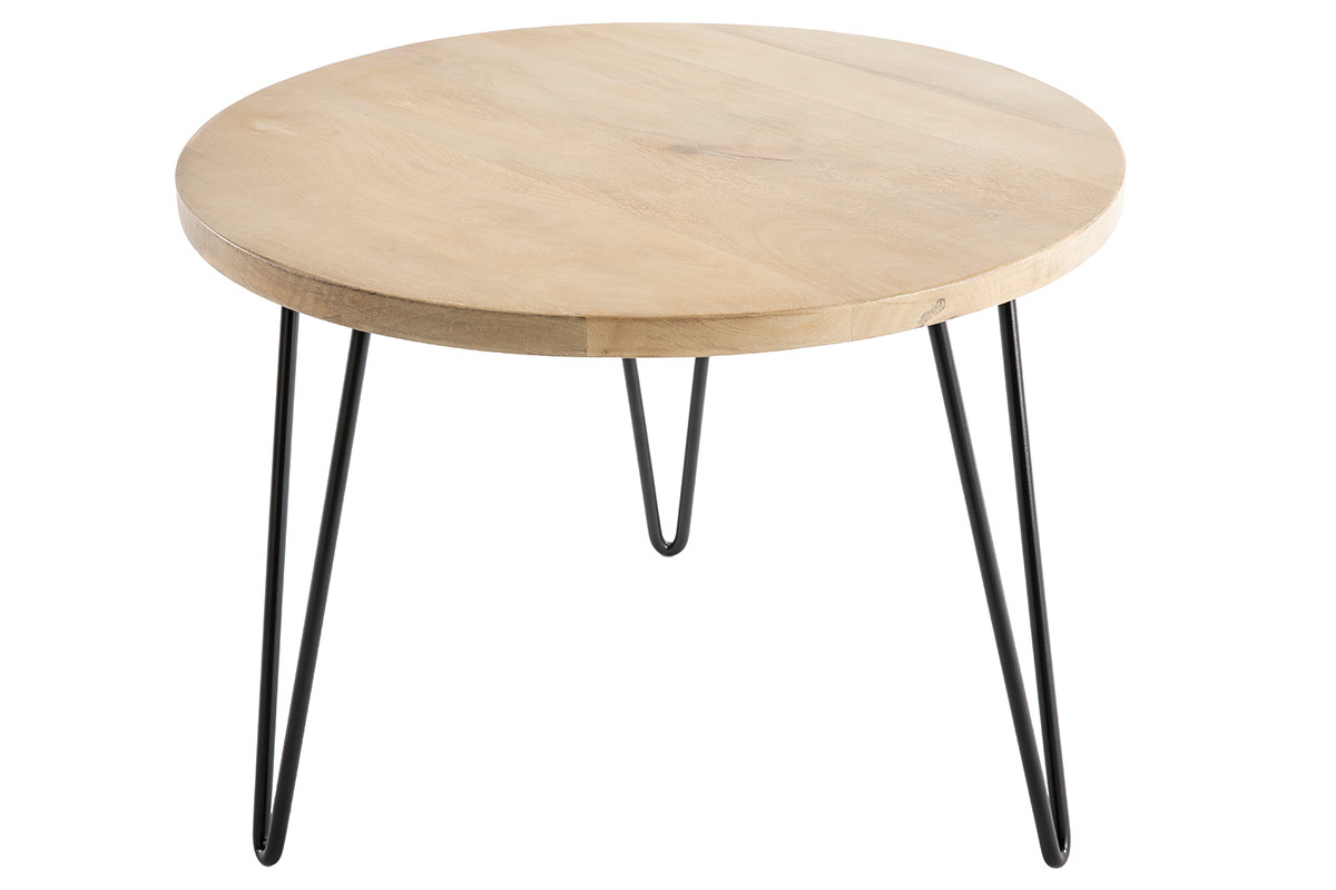 Conçue de manière artisanale, cette table basse arbore les nuances uniques du "fait main". Le manguier utilisé est un bois de caractère qui offre de belles finitions et un rendu qui a de la personnalité. L'association du bois massif et brut à un piètement en épingle en métal noir donne à la table VIBES un charme indéniable.