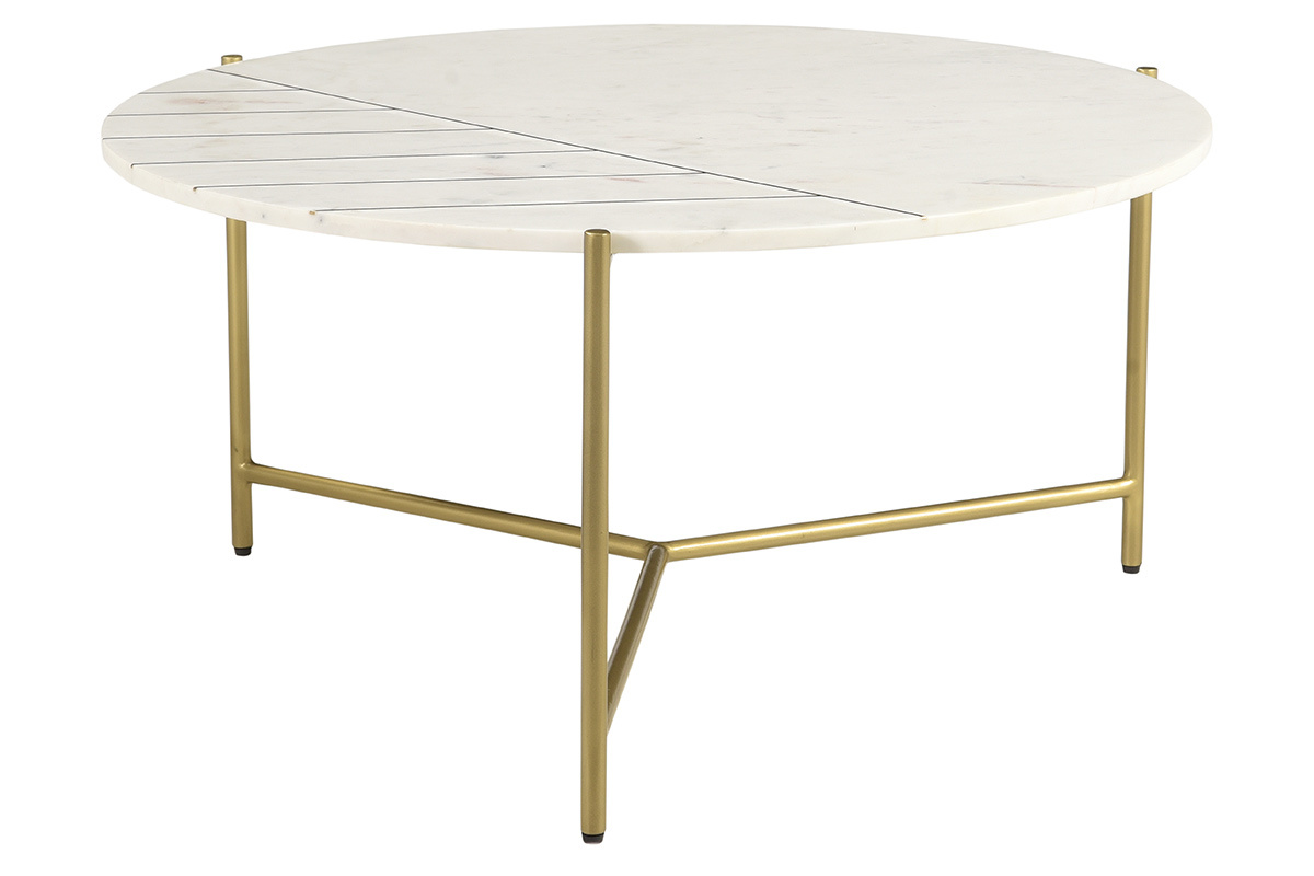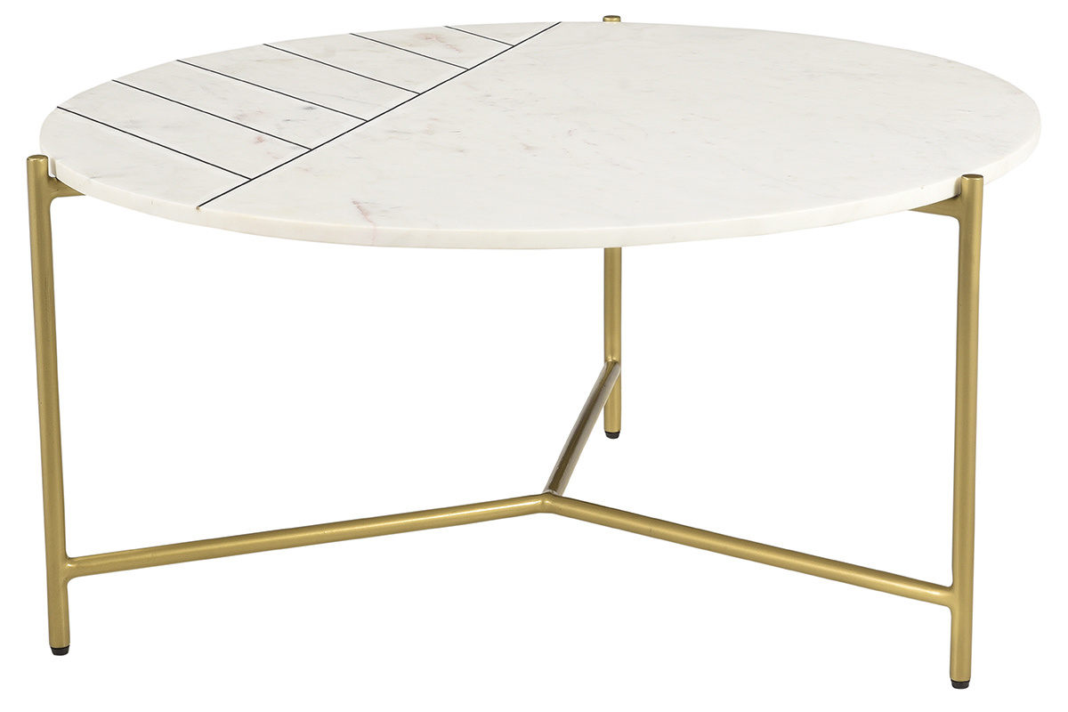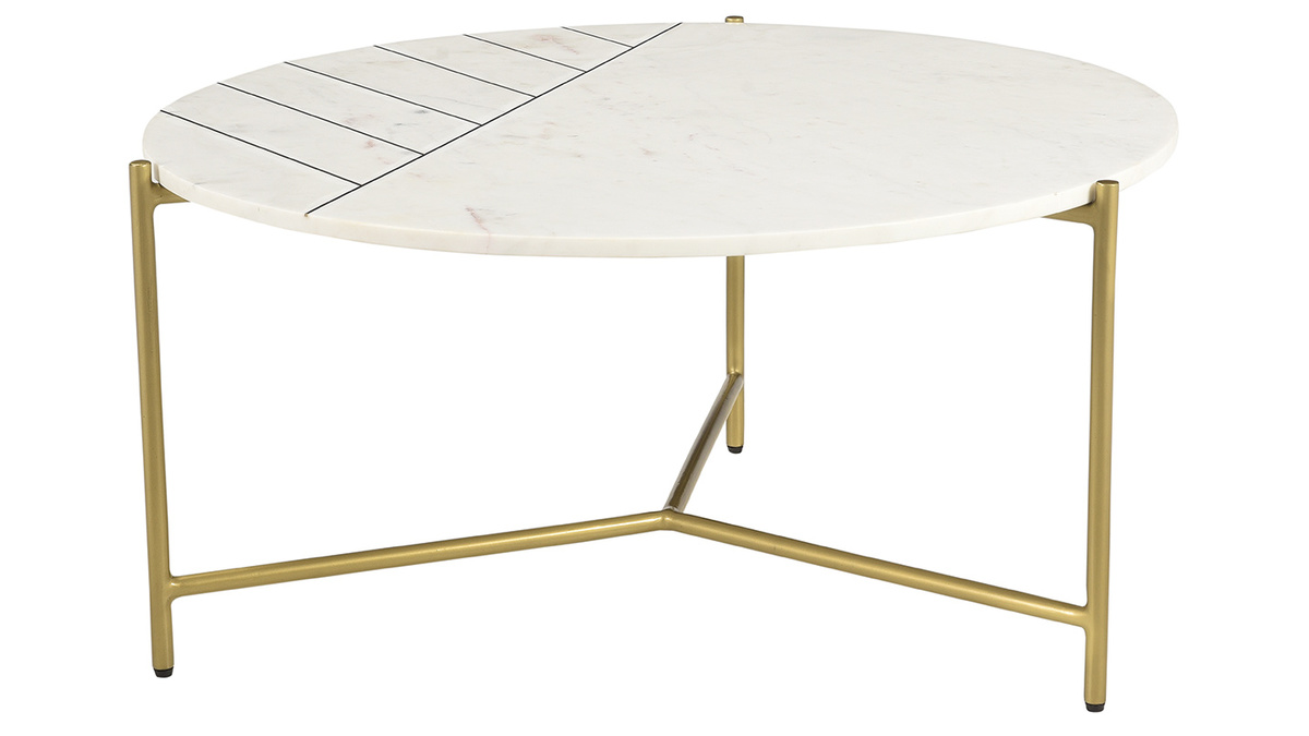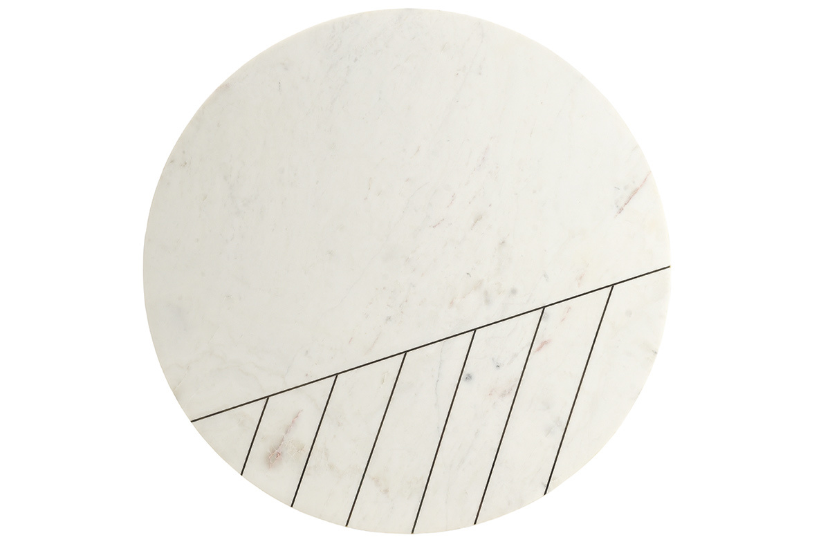 Avec son grand plateau (90 cm) intégralement en marbre, cette table basse est un meuble élégant. Réalisée selon des techniques artisanales, la table ronde SILLON possède tout ce qui fait le charme des meubles authentiques. Elle est idéale pour habiller un salon mêlant velours et pièces métalliques. Grâce à son motif travaillé tout en finesse et son piètement doré, elle complètera un intérieur aussi bien classique que contemporain.