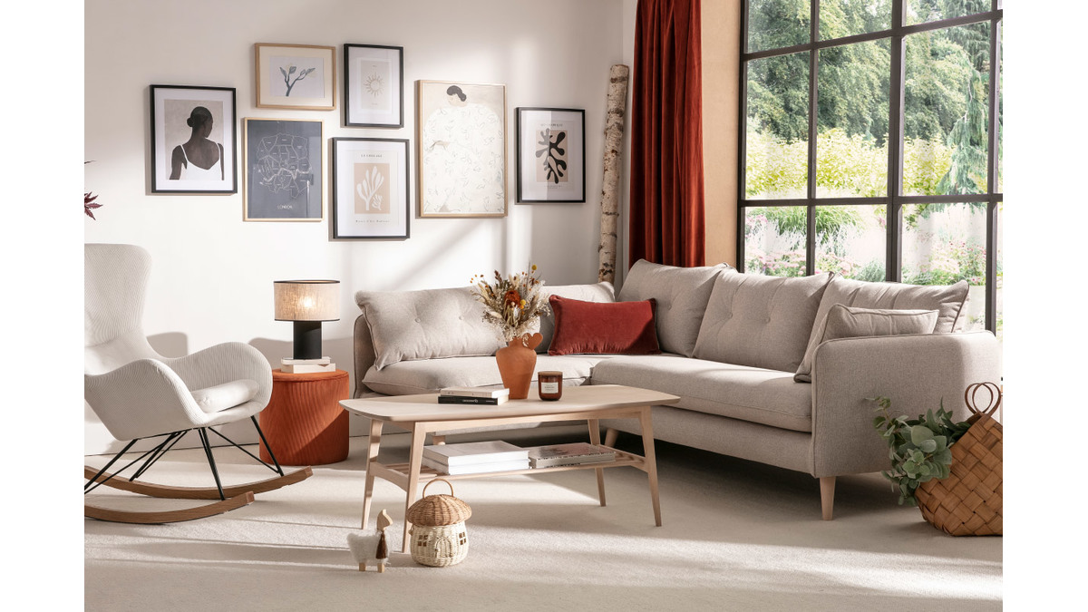 Accompagnée d'un canapé en tissu de la collection Miliboo, la table basse JULIANNE fera du séjour un espace chaleureux et authentique.