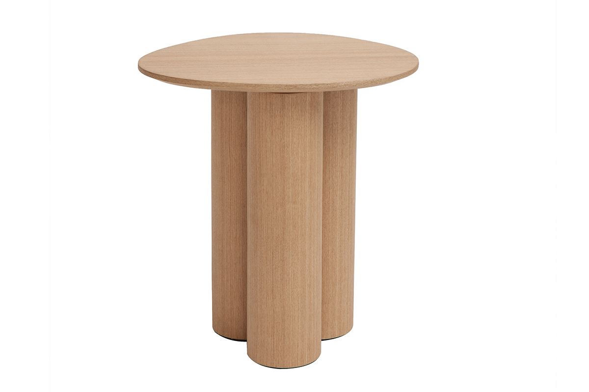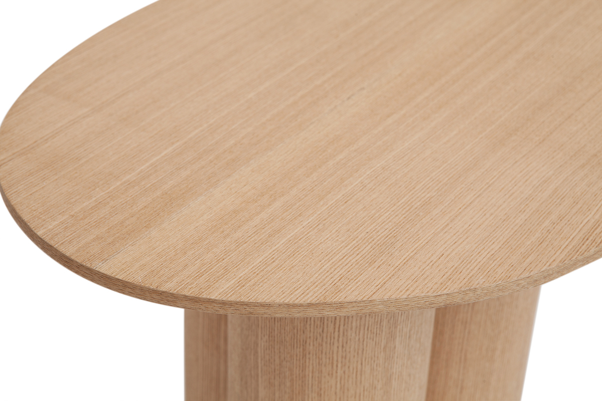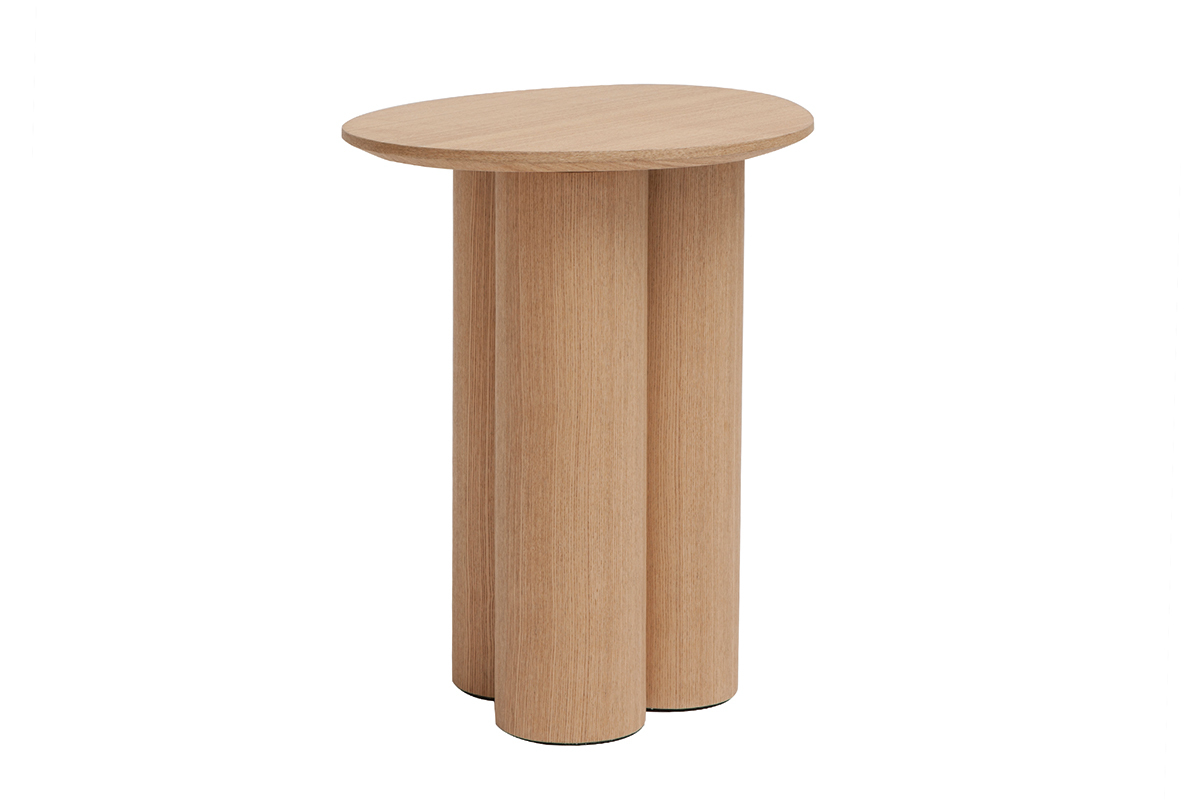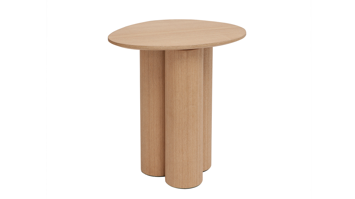 Avec ses dimensions peu encombrantes (L44.5 x P35.5 x H48.5 cm), ce mobilier original complétera avec charme la décoration de vos pièces de vie, même les plus exiguës ! Le plateau ovale tout en courbes (L45.5 x L35.5 x E1.9 cm) repose sur un piètement central, formé par trois cylindres. Un ensemble en panneaux de fibres de bois placage frêne qui fait ainsi rimer robustesse et facilité d'entretien.