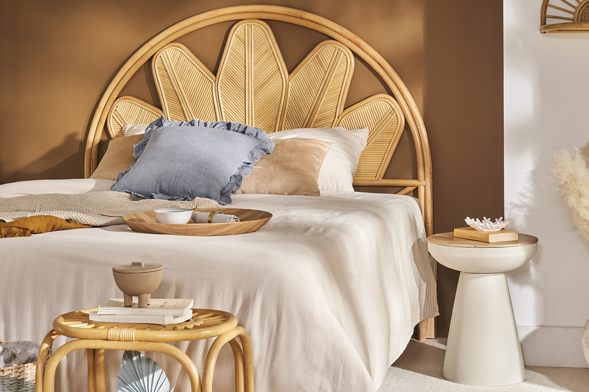 Pour assurer une déco qui inspire douceur et apaisement, optez pour des fibres naturelles et privilégiez la rondeur dans votre pièce de vie. Suspensions en cannage ou rabane, assises rebondies et accueillantes seront du plus bel effet aux côtés du bout de canapé TAM.