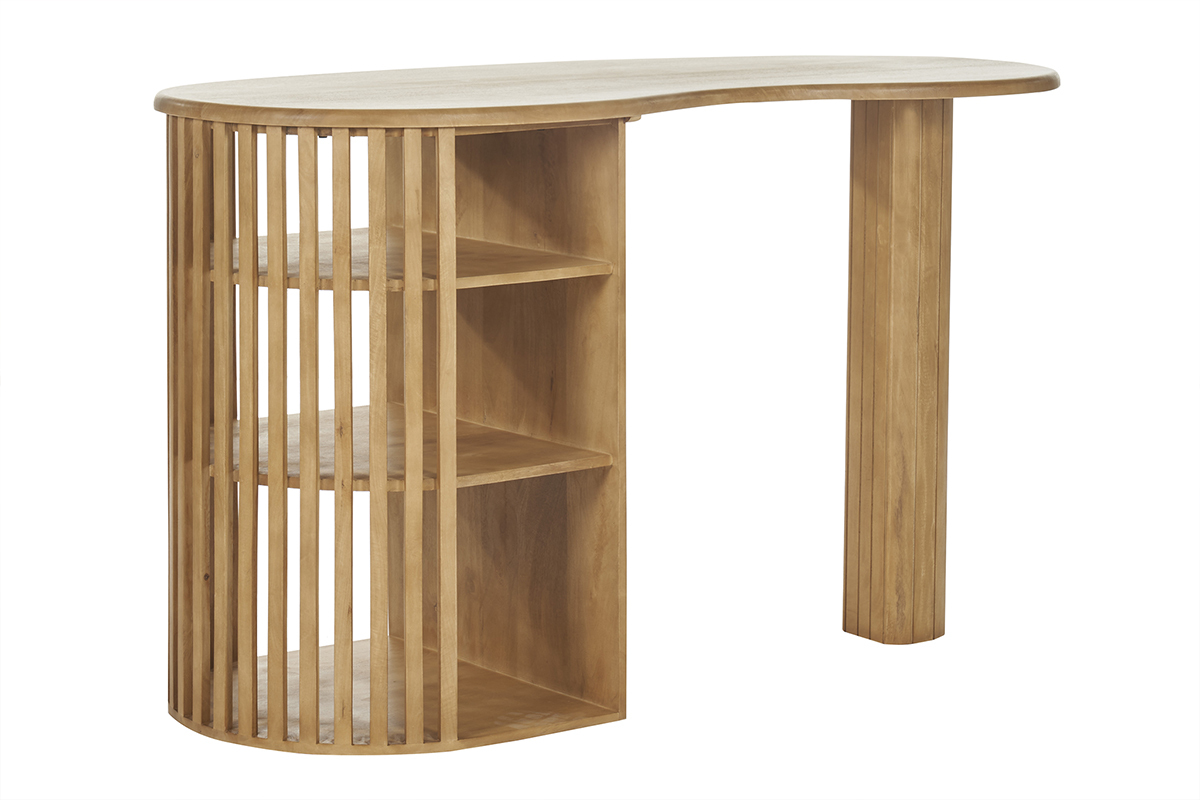 Pile dans la tendance du design organique, avec son épais plateau arrondi, son style intuitif et ses lignes inspirées de la forme d'un haricot, la table de bar LOBIO séduit par sa simplicité. À la fois très actuelle et empreinte de naturel, authentique et poétique, cette table de bar moderne en bois massif réunit avec brio, esprit chaleureux du bois et style inédit !