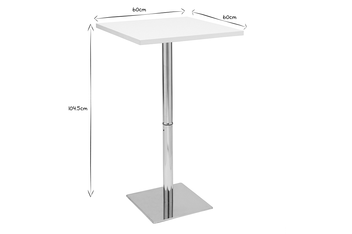 Son design sobre et élégant associé à un plateau carré en font un élément moderne et intemporel qui traversera les années. La table de bar design JACK est composée de panneaux de fibres de bois pour le plateau et de métal chromé pour le piètement. Elle est conçue pour accueillir 4 convives et ses dimensions de 60 x 60 cm lui permettent de parfaitement se glisser dans les petits espaces.