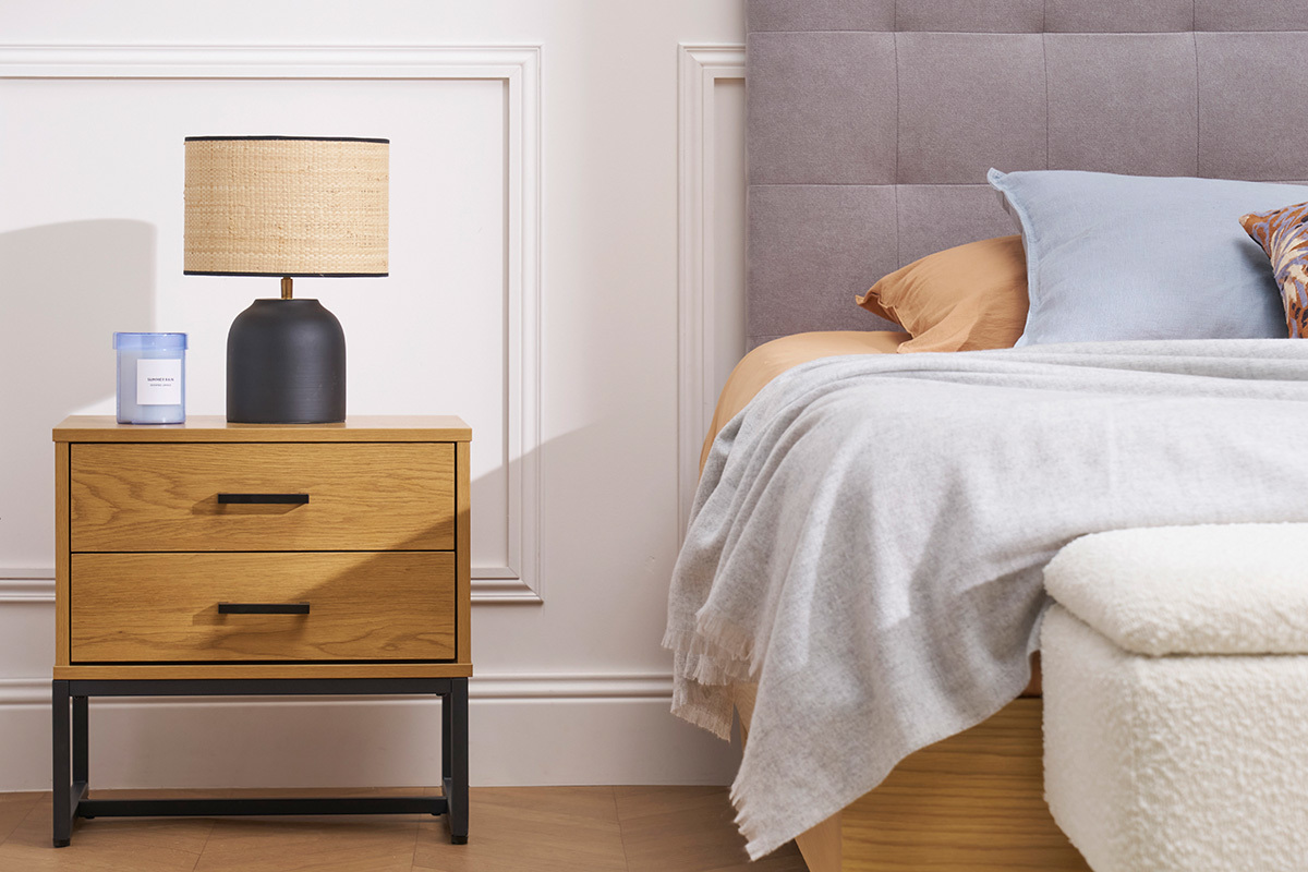 Polyvalent, ce chevet aux dimensions compactes (L50 x P43 x H50 cm) peut aussi faire office de bout de canapé ou de table d'appoint dans le séjour. Ses 2 grands tiroirs (dimensions intérieures L42 x P33.5 x H6 cm) sont parfaits pour dissimuler les petits objets qui envahissent nos espaces de vie.