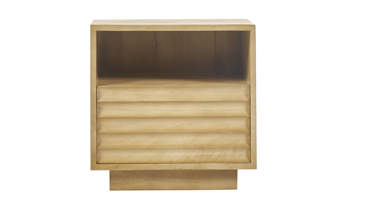 Idéale pour compléter un lit bas ou un intérieur épuré, cette table de chevet en bois est une pièce qui enrichira votre décoration tout en y ajoutant une touche de charme naturel et de sérénité. Son design intemporel et sa fabrication artisanale en font un choix idéal pour ceux qui recherchent une esthétique épurée et durable. Cette petite table de chevet allie donc la chaleur du bois massif de manguier avec des lignes modernes ondulées, pour une atmosphère harmonieuse et épurée.