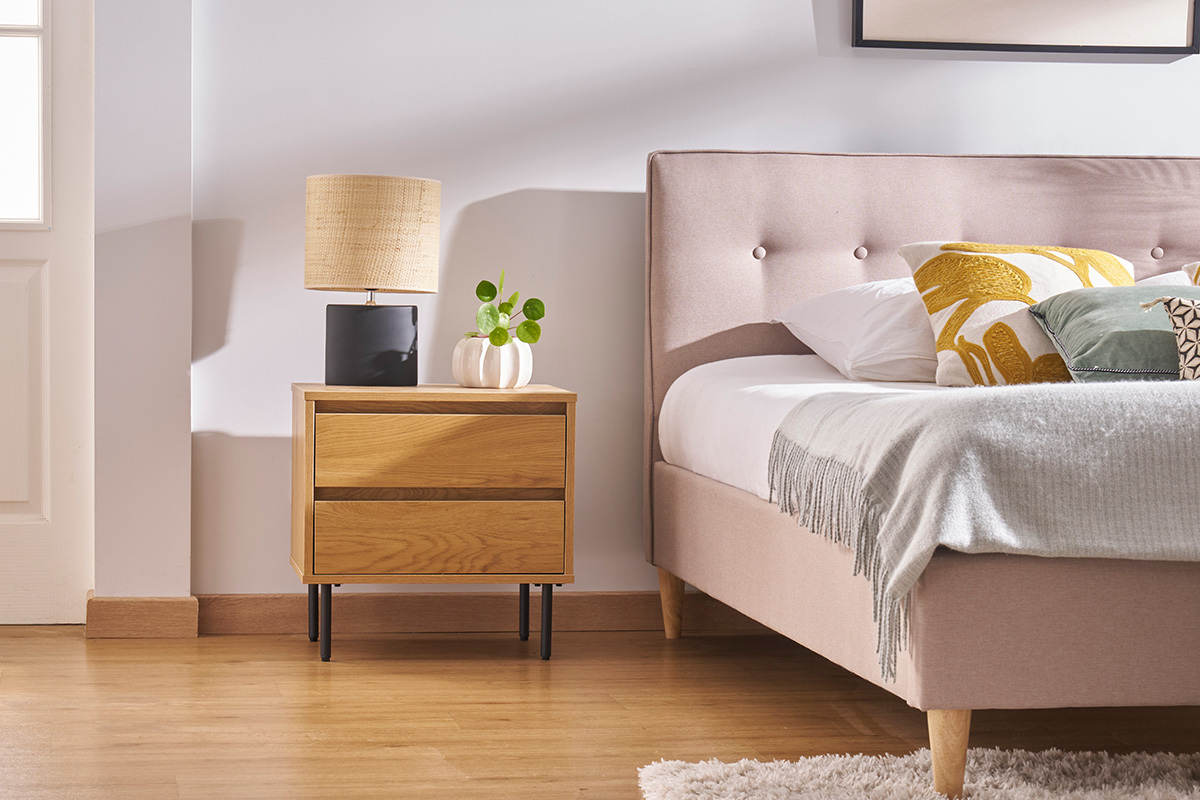 Livres et autres essentiels trouveront facilement leur place au sein des deux tiroirs qui composent cette table de chevet.