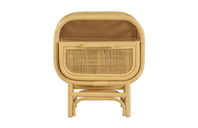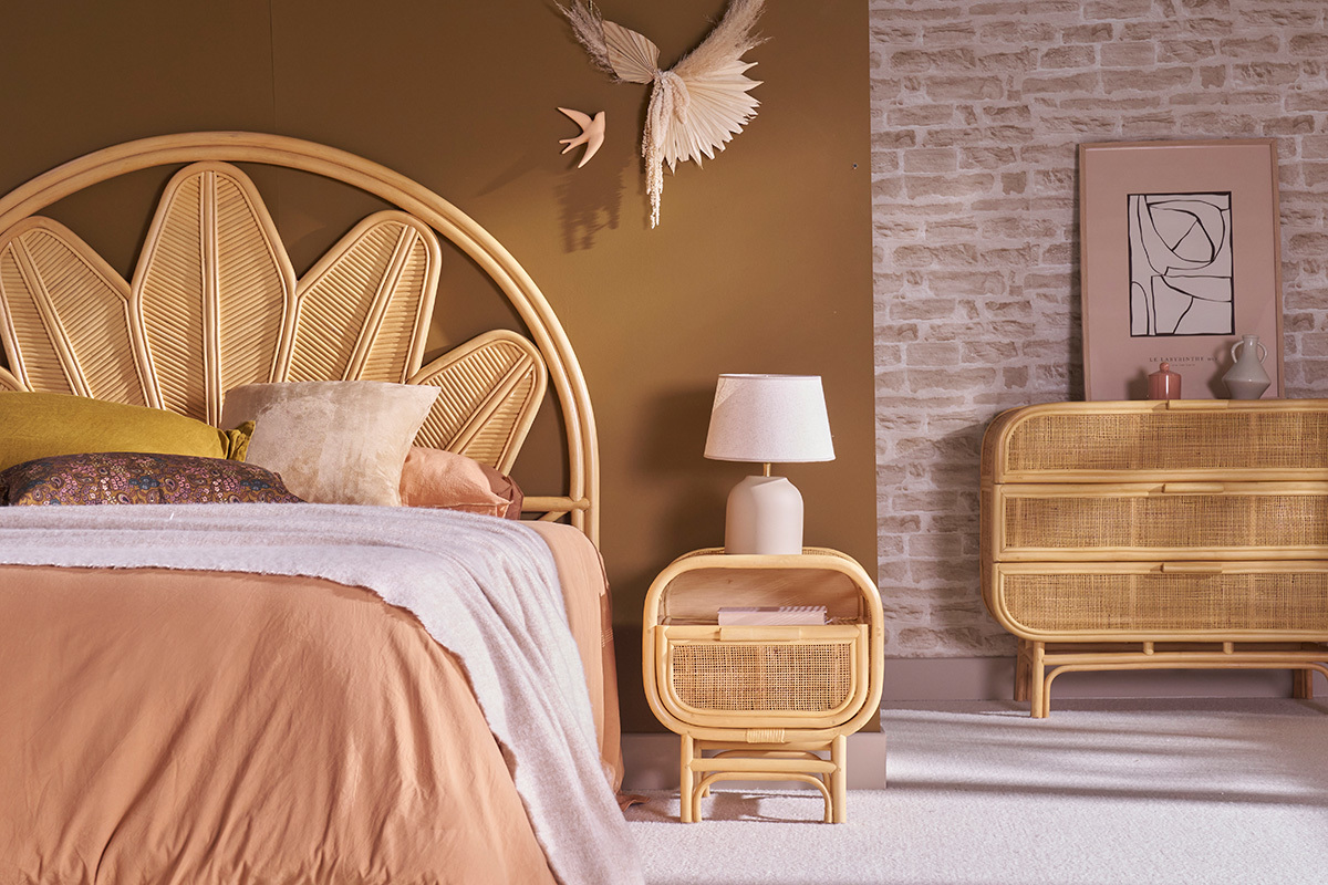 Polyvalente, cette table de nuit peut également servir de table d’appoint dans un salon ou un bureau, offrant une solution de rangement pratique avec un style naturel et bohème. Associée à des meubles en bois clair, des textiles doux et des accents végétaux, elle contribue à créer une ambiance apaisante et chaleureuse.