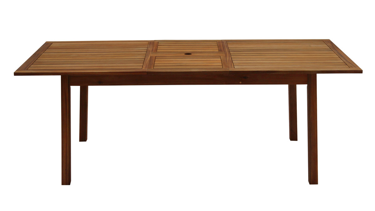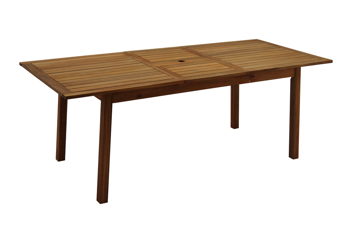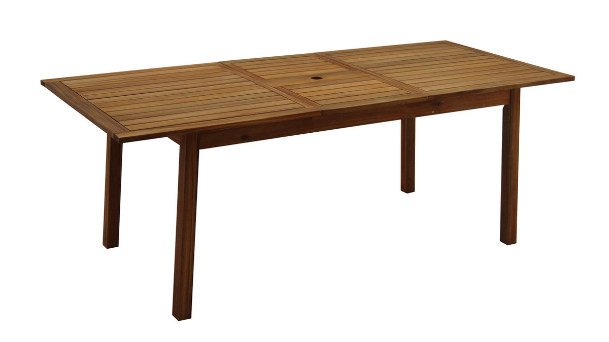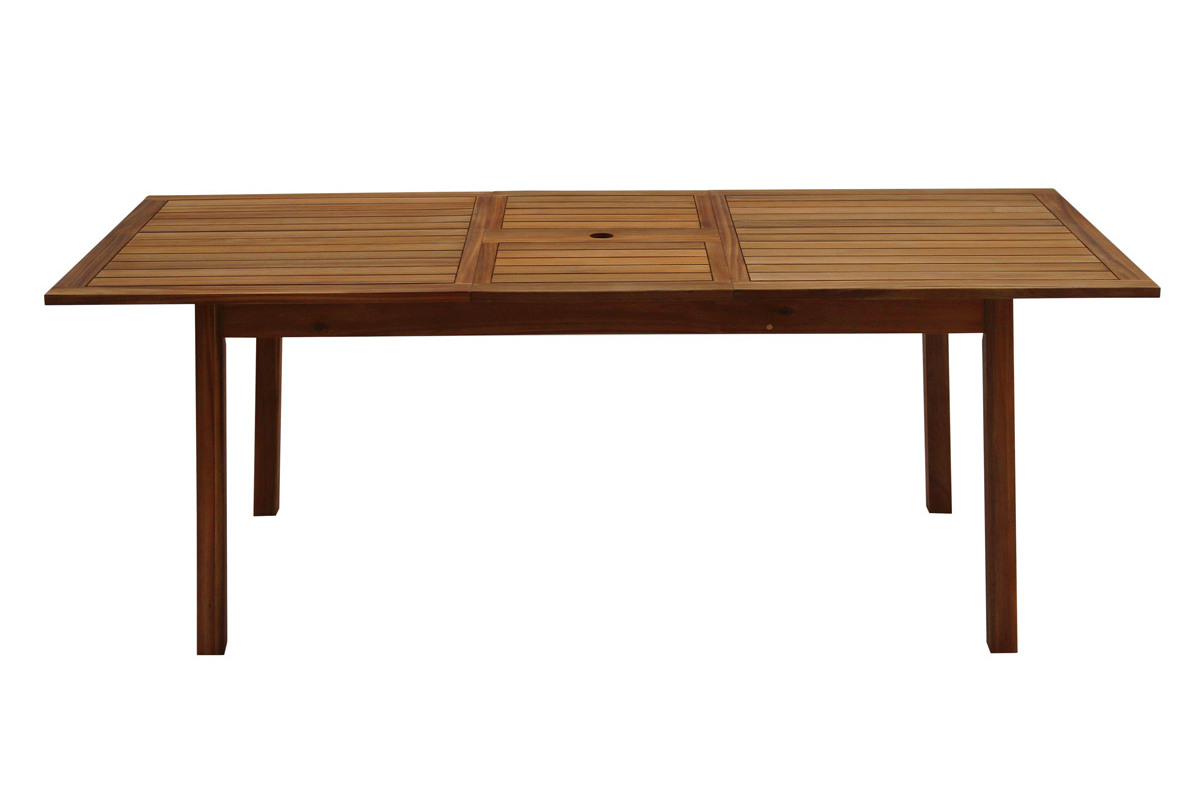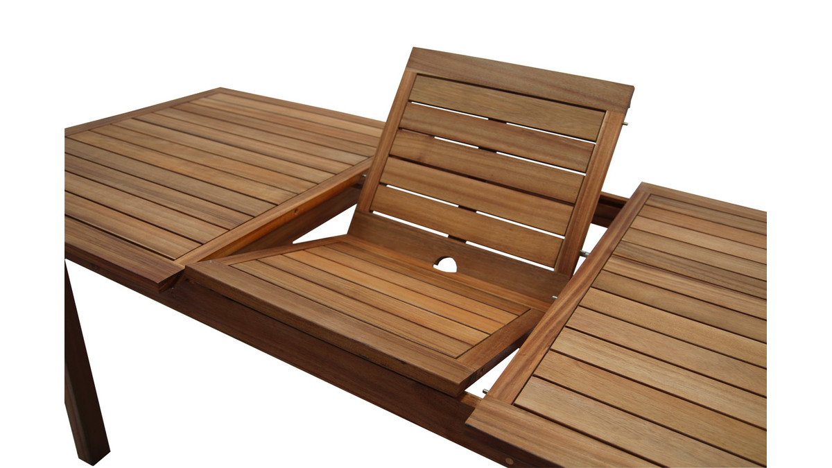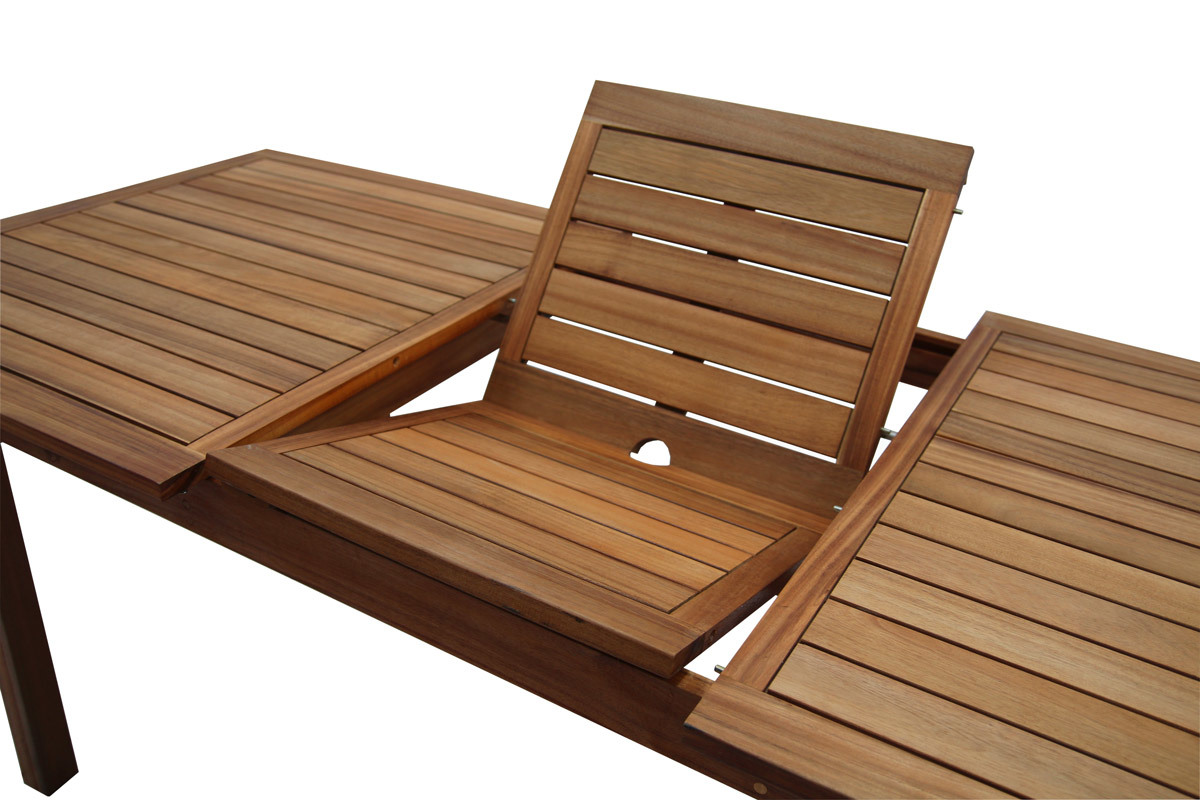 Pour compléter l'aménagement de votre terrasse, vous pouvez entourer cette table à manger extensible 6 à 10 personnes à des chaises de jardin en bois assorties.