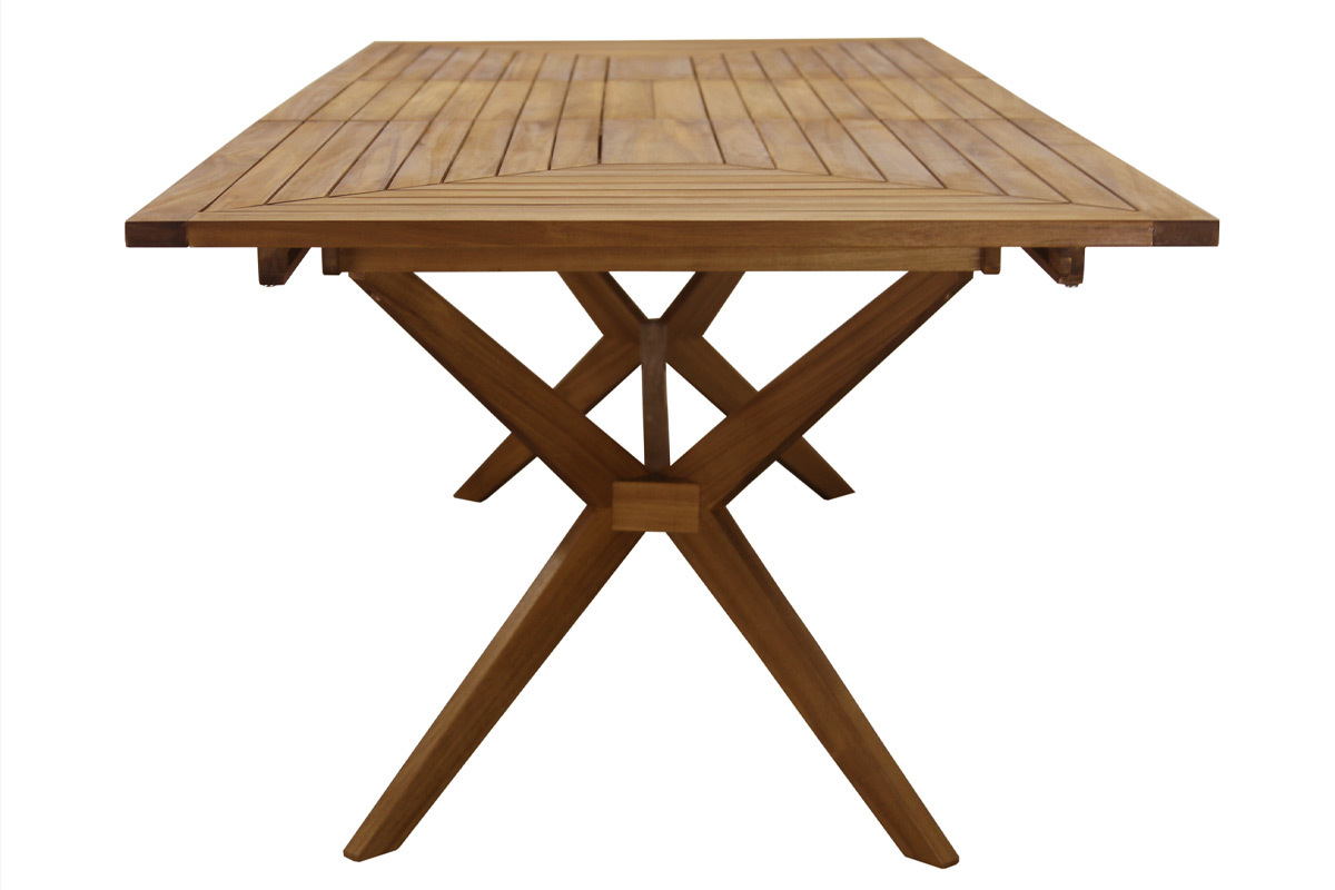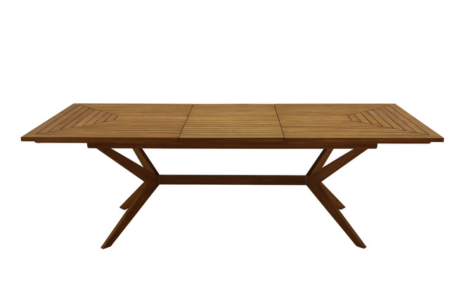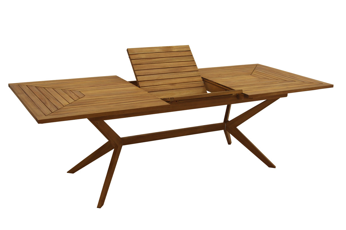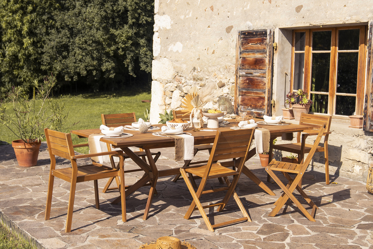 Sa rallonge s'installe en un rien de temps et s'intègre parfaitement au plateau en bois massif d'acacia. Ses pieds renforcés offriront une grande stabilité. Il ne reste plus qu'à choisir les chaises de jardin idéales pour compléter cet assortiment au ton chaud et naturel. Puis place au barbecue !