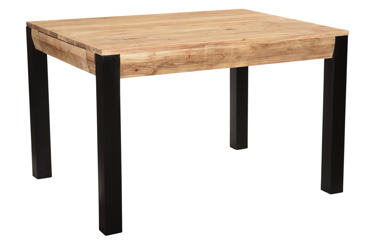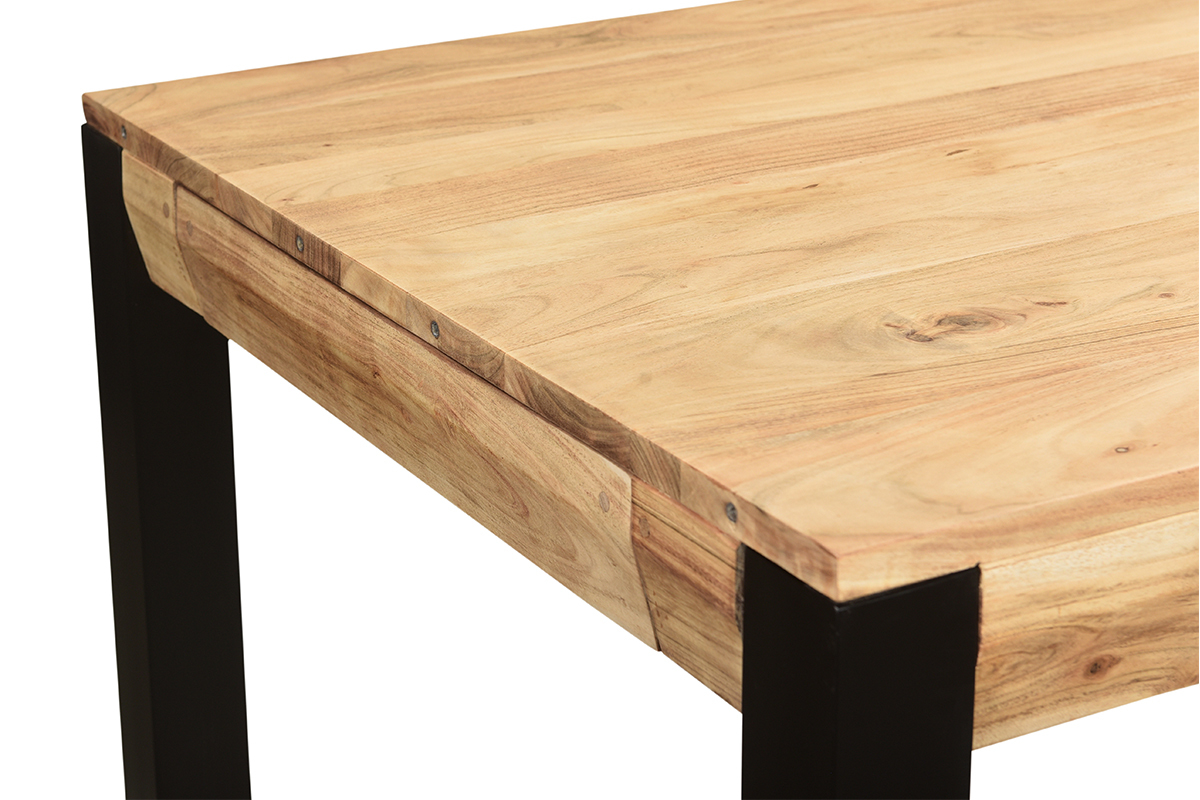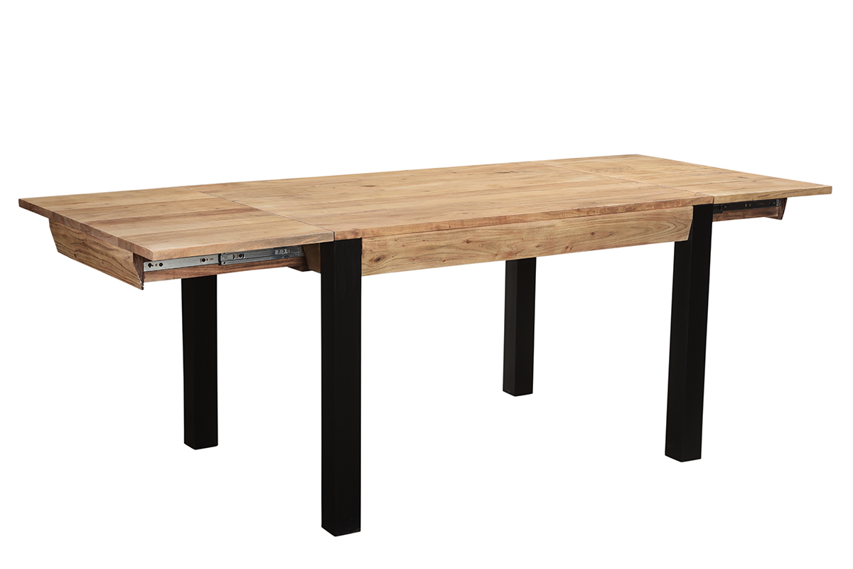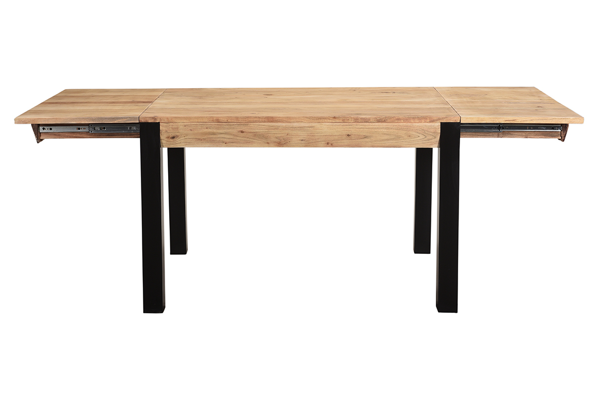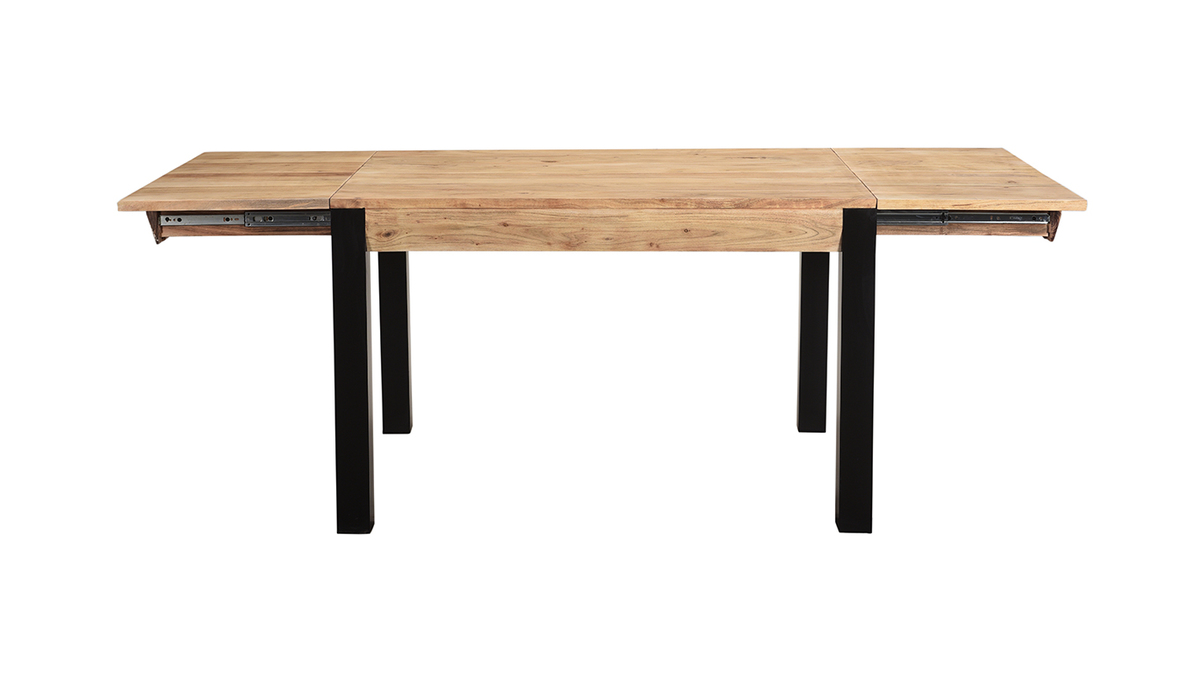 Table à manger extensible rallonges intégrées en bois massif et métal noir L120-210 cm TRAP livrée prête à monter. Montage simple, seul le piètement est à fixer.
