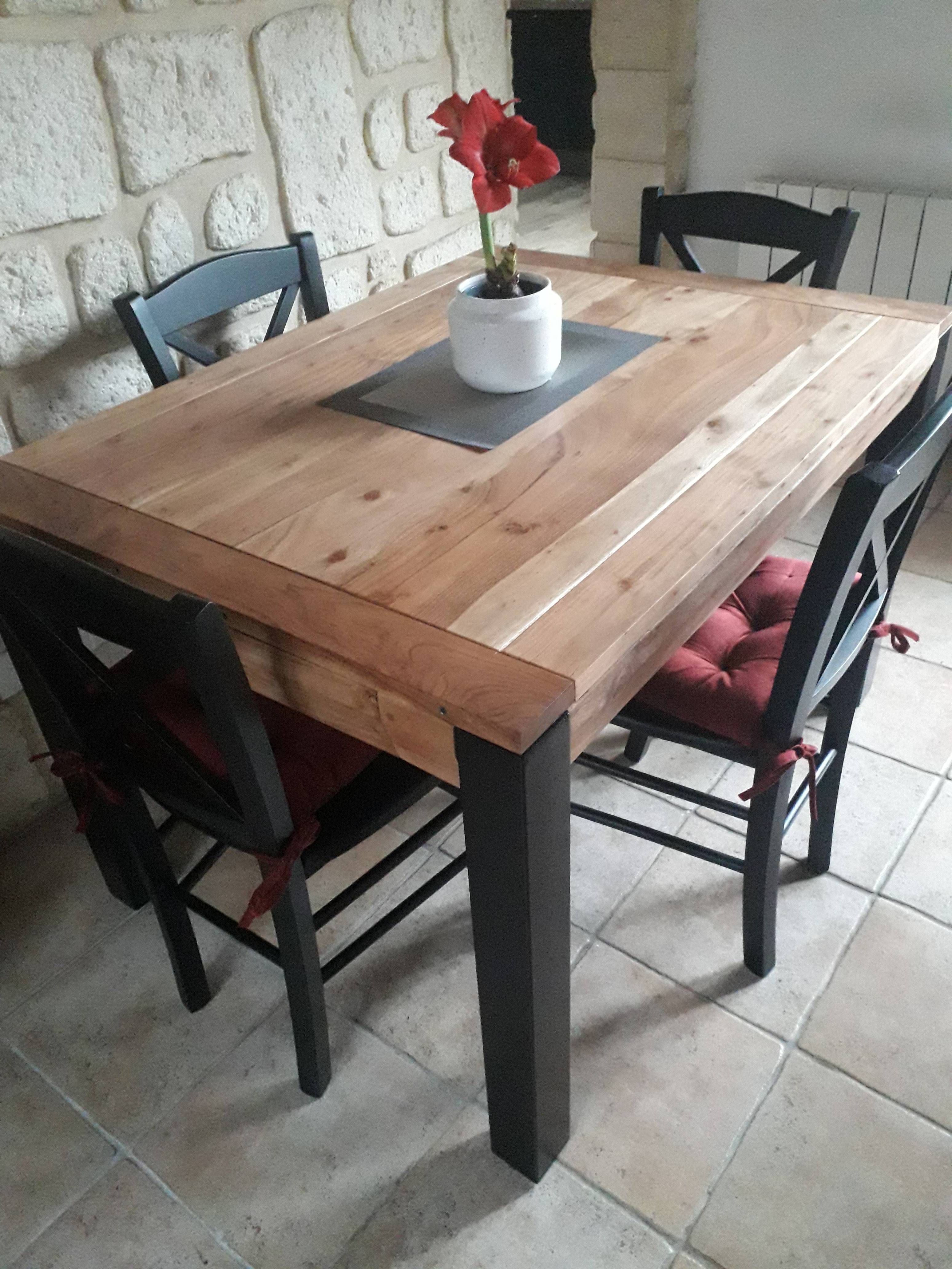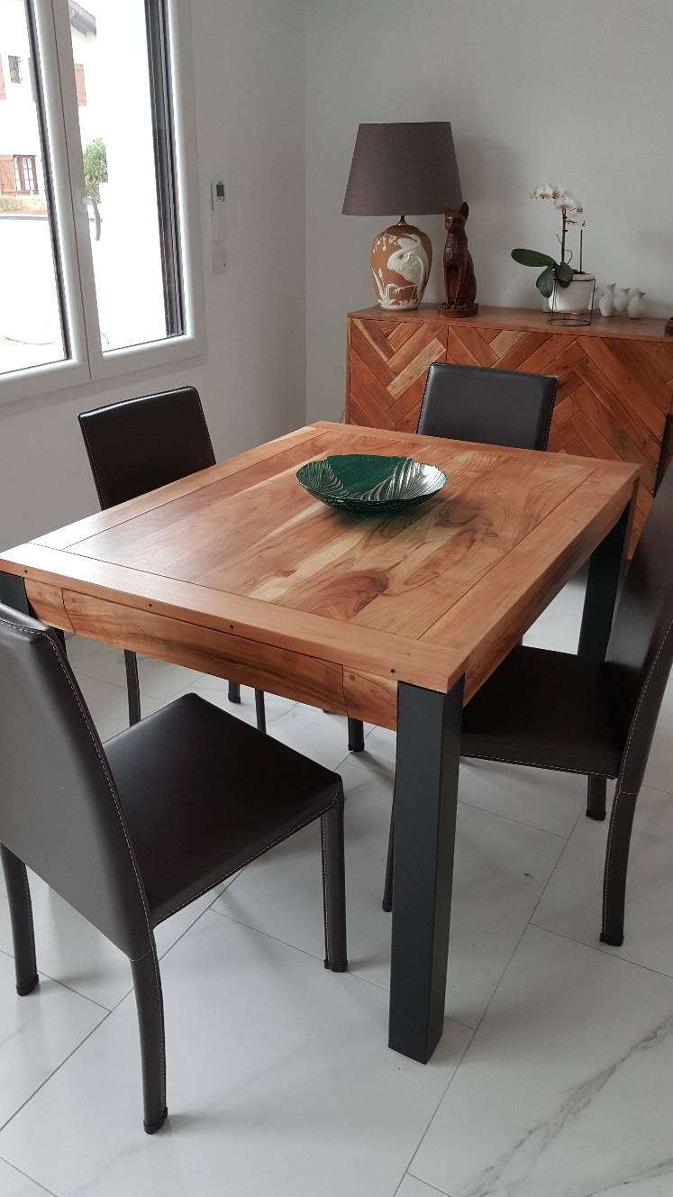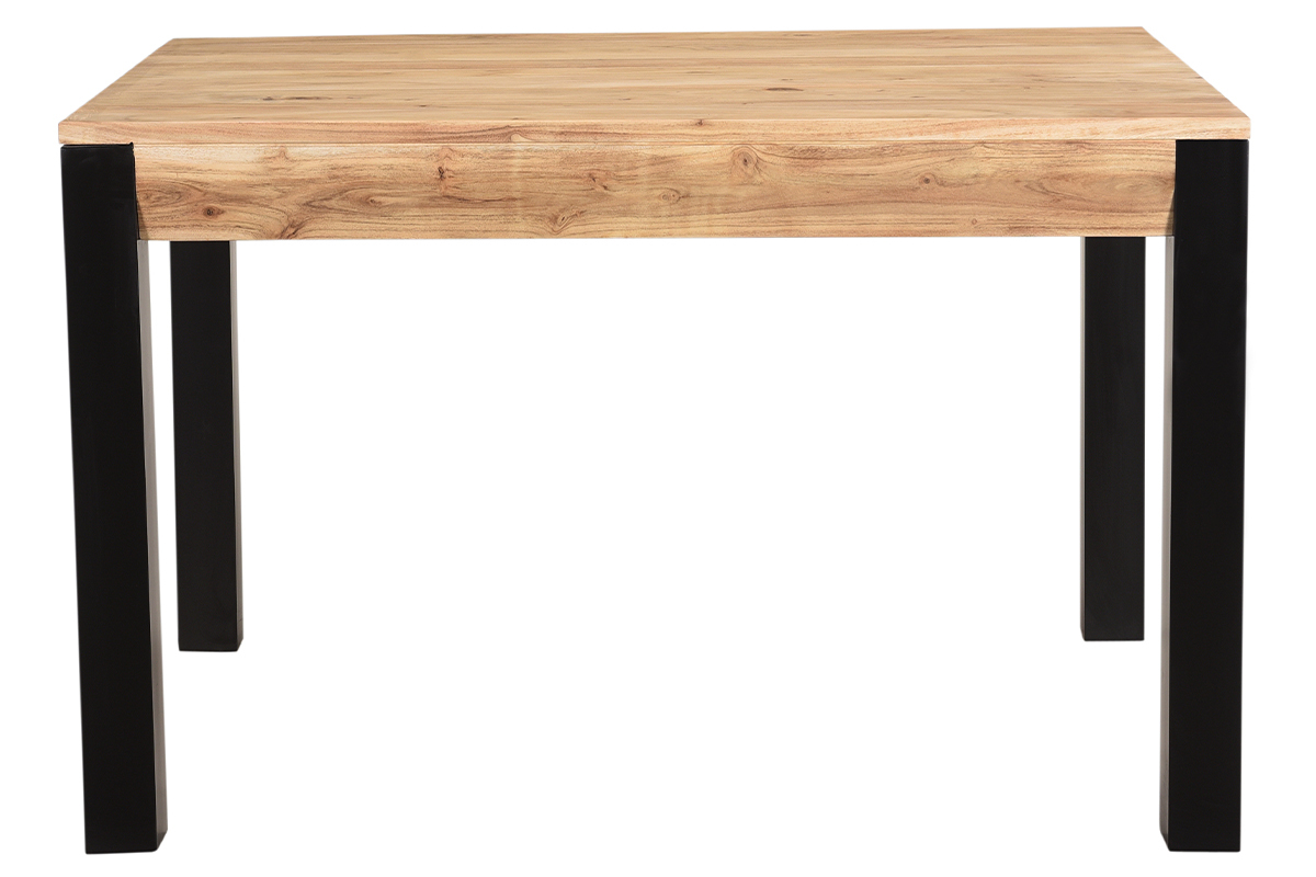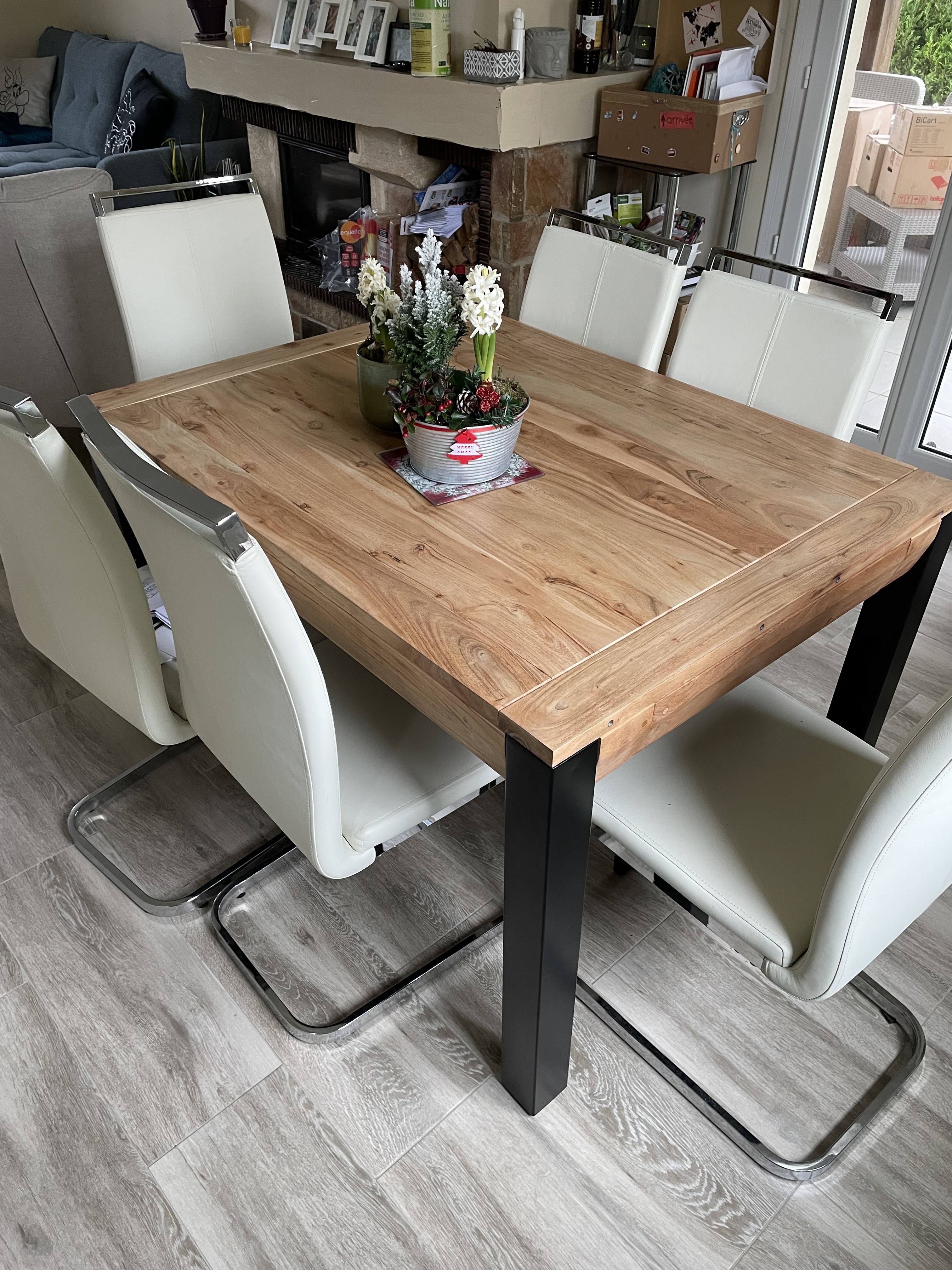 Table à manger extensible rallonges intégrées en bois massif et métal noir L120-210 cm TRAP livrée prête à monter. Montage simple, seul le piètement est à fixer.