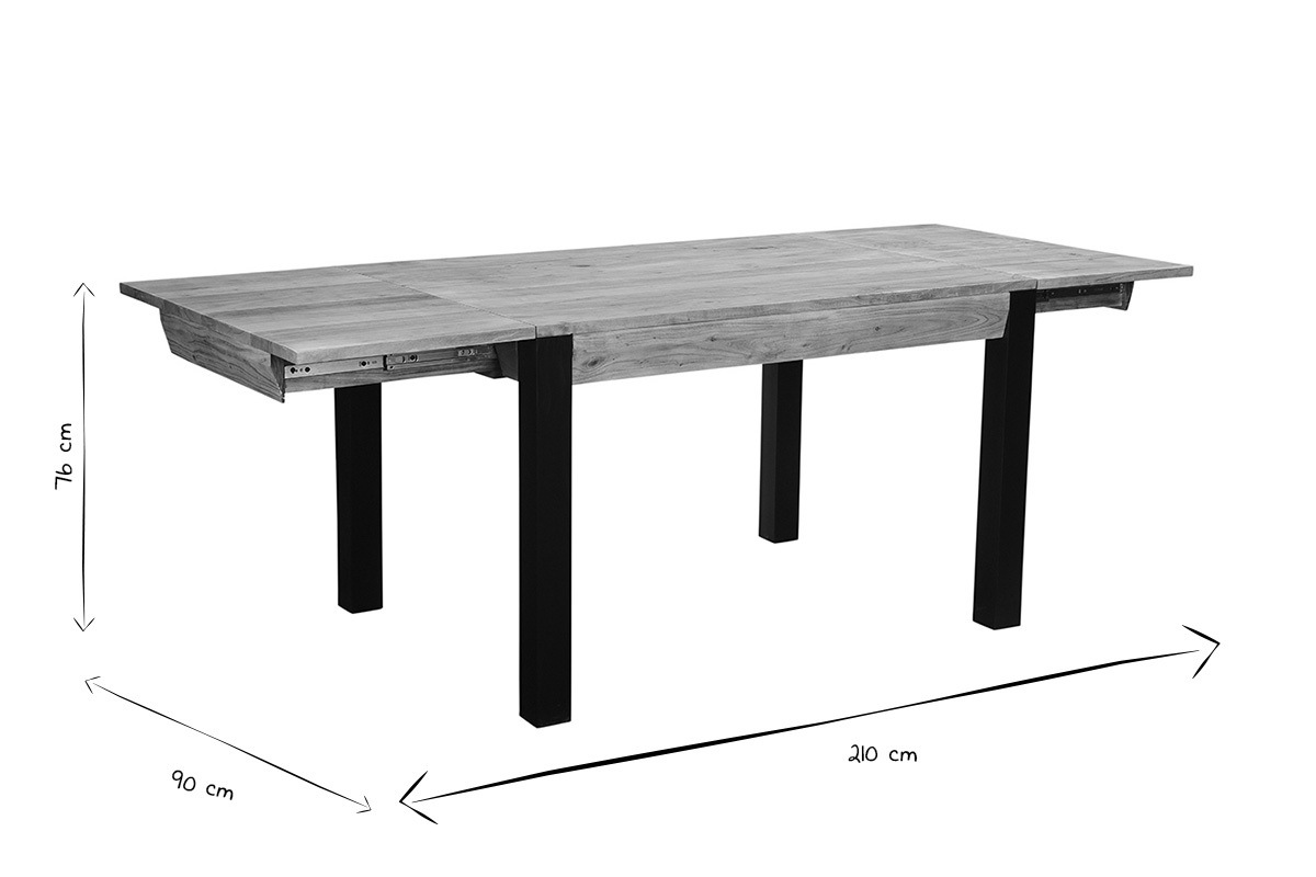 Dimensions table ouverte : L210 x P90 x H76 cm