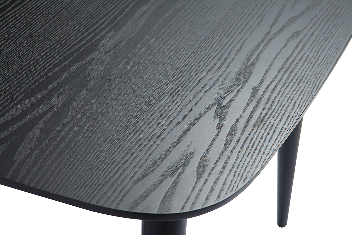 Le design de la table à manger extensible NORDECO est inspiré des années 60. Ses lignes douces et pures, tout en arrondi, apportent de la légereté tandis que son habit noir crée une atmosphère raffinée. Joli mélange d'inspiration scandinave et vintage, c'est une table élégante et indémodable. Sa teinte noire apportera une touche rétro chic à l'espace repas et s'intègrera dans tous les styles d'intérieur.