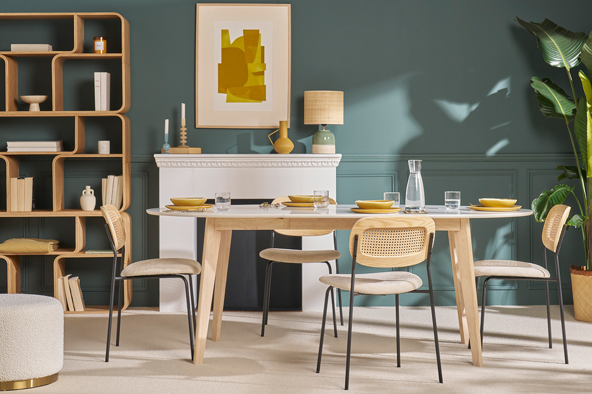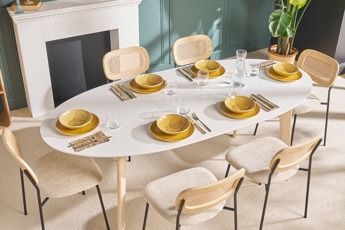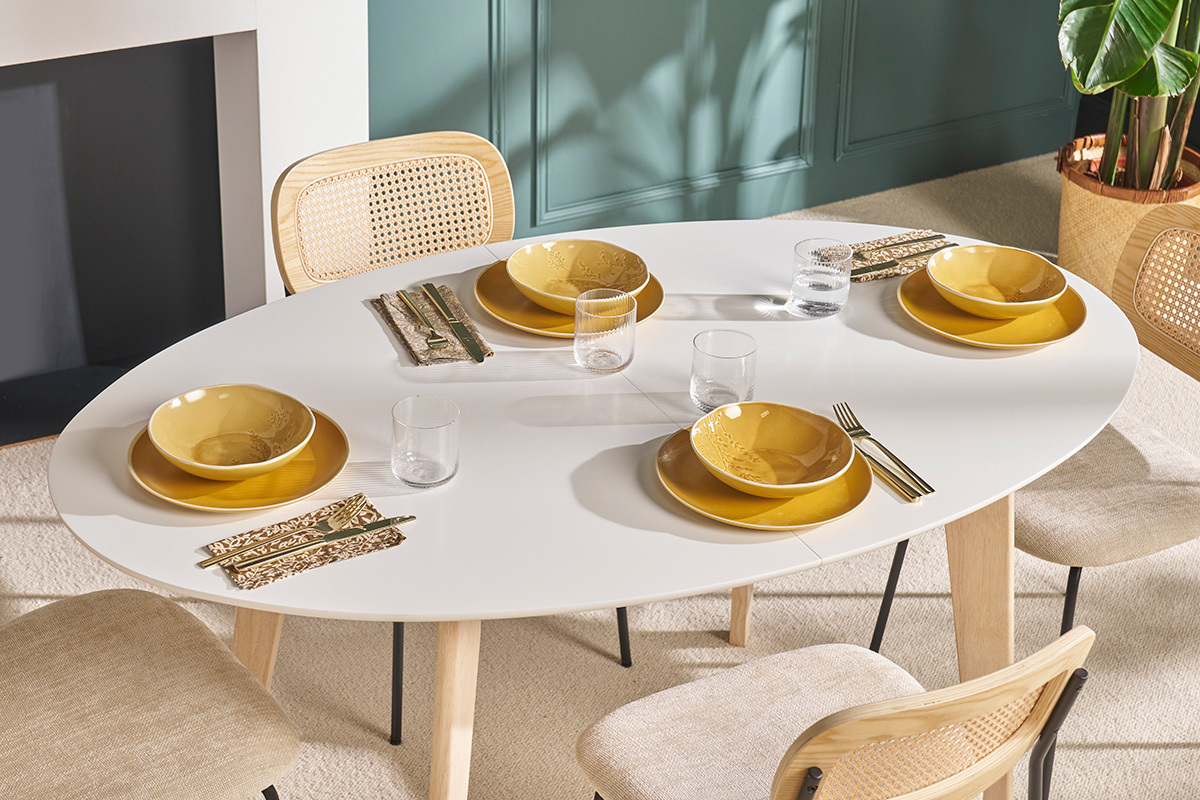La table extensible blanche et bois clair LEENA deviendra vite l'atout charme de votre salle à manger.