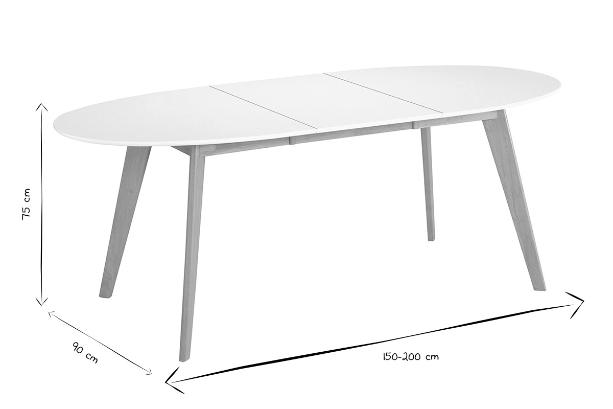 Dépliée, cette table extensible mesure 200 x 90 cm. Elle vous permettra d'accueillir jusqu'à 8 convives. Repliée, elle mesure 150 x 90 cm et permet ainsi un véritable gain de place.