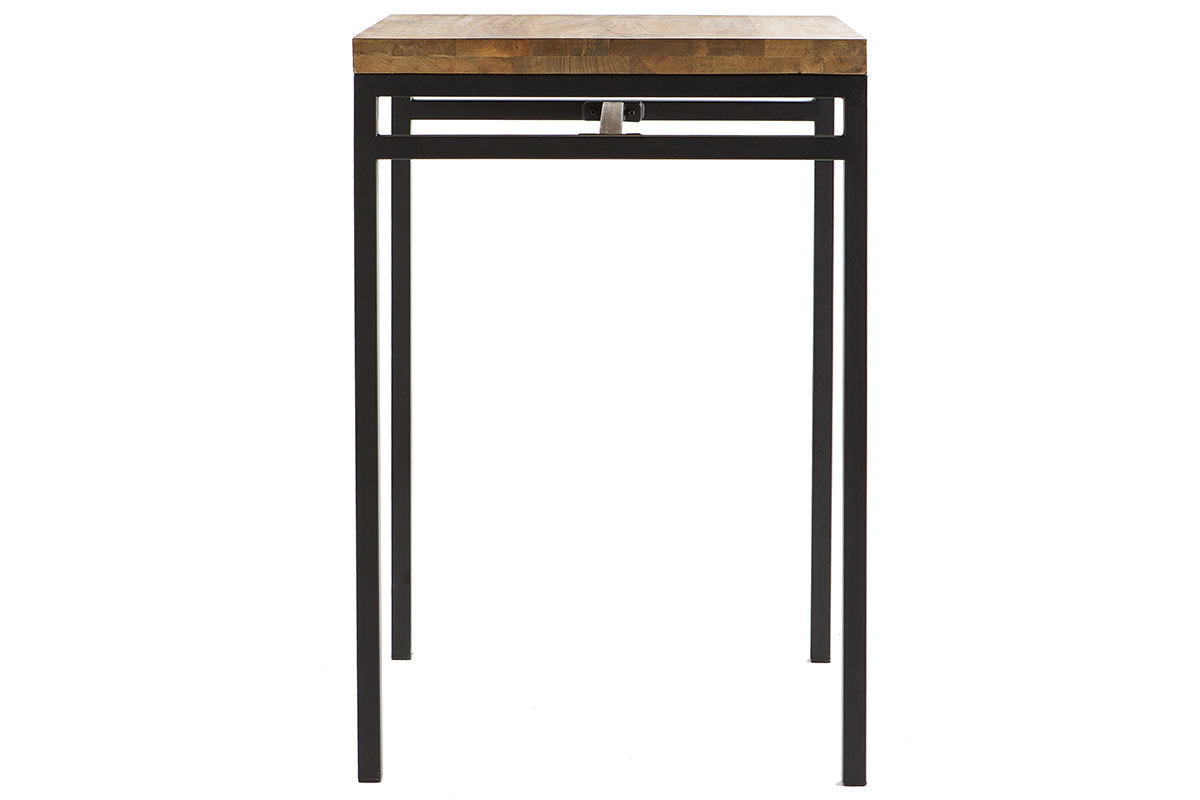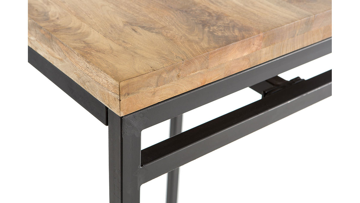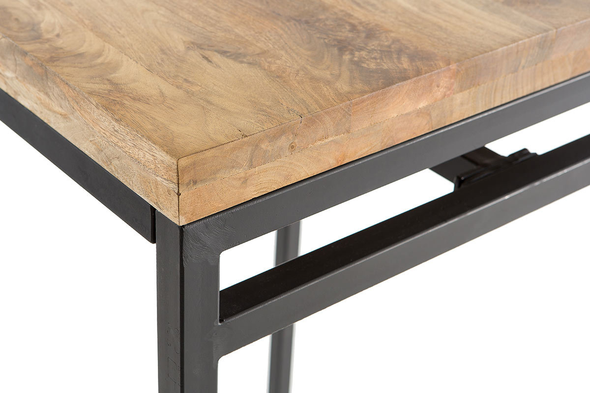 En mélangeant manguier et métal, cette table haute s'inscrit dans la tendance industrielle. Le manguier est un bois exotique avec un veinage singulier qui apporte originalité et élégance aux intérieurs. Associé à du métal, il donne un style très urbain. Cette table de bar au design épuré est un beau mélange de ces deux matériaux et trouvera sa place dans un séjour industriel.
