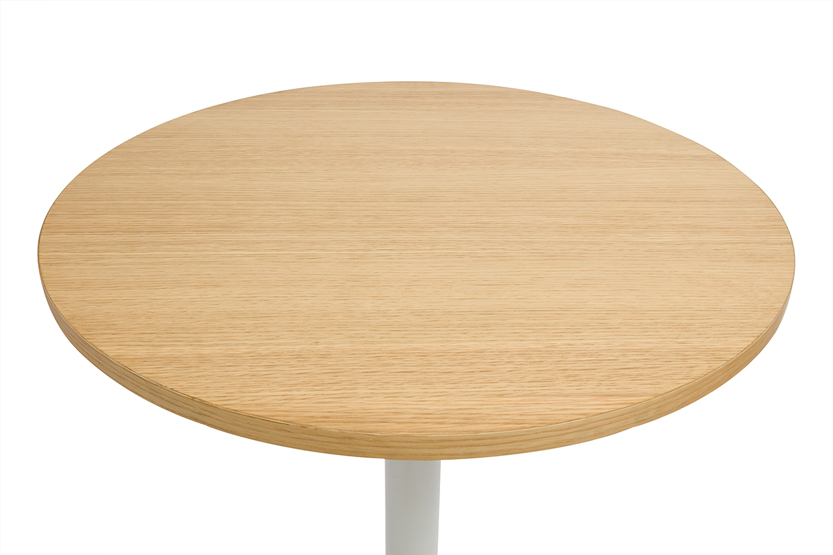 Table haute bois clair chêne et métal blanc livrée prête à monter.