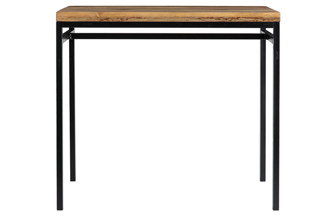 Composée d'un plateau en manguier et d'une structure en métal noir, cette table bar est un meuble à la fois solide et plein de charme. Le manguier est une essence de bois au rendu unique. Il est idéal pour réchauffer la décoration de la pièce et fera du coin repas un espace convivial. Le mariage entre ce bois si particulier et une structure métallique noire donne à l'ensemble un esprit industriel dans l'air du temps.