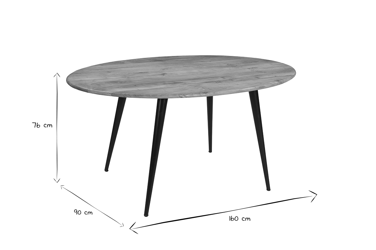 Table à manger ovale en bois massif et métal noir L160 cm OBALI livrée prête à monter. Montage simple seul le piètement est à fixer. Le colis étant volumineux, nous vous conseillons de vérifier que portes et escaliers permettent son passage.