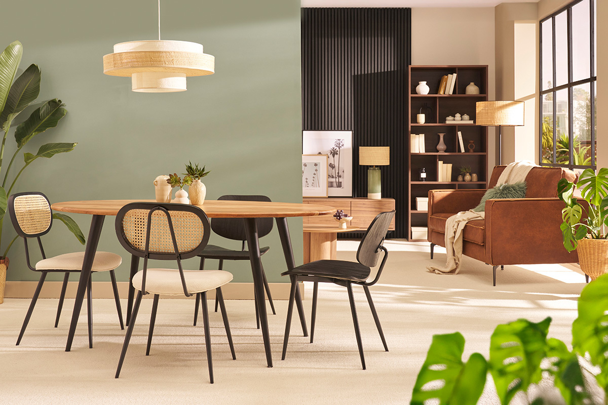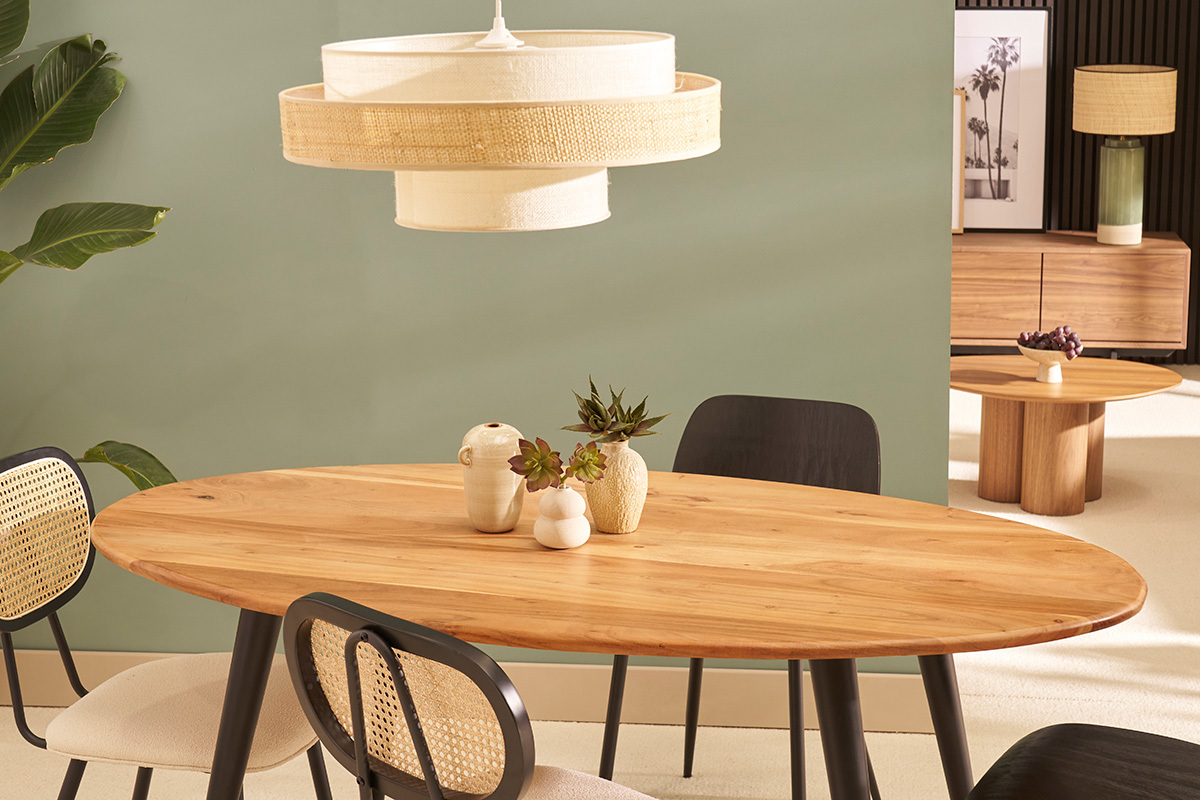 La douceur des courbes du plateau ovale associé aux pieds compas a toute sa place dans une salle à manger plein de vie et conviviale ! OBALI est une table à manger ovale 6 places conçue pour les moments de partage, où l'on prend plaisir à se réunir. Ses 160 cm de long lui permettent d'accueillir confortablement 6 personnes. Quelques chaises dépareillées choisies avec soin et le coin repas devient la pièce maîtresse de votre intérieur !