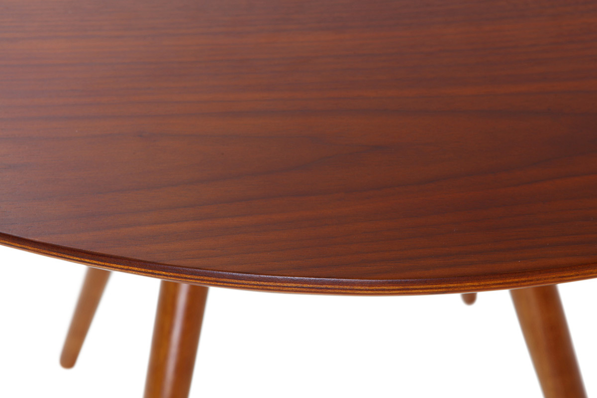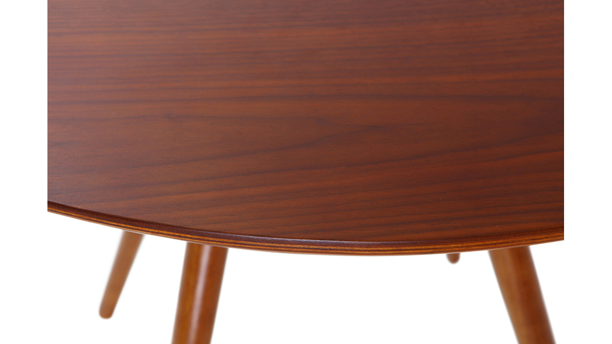 La table à manger ARTIK est en panneaux de fibres de bois épaisseur 2.3 cm, finition plaquée noyer, ses pieds sont en hévéa finition noyer.