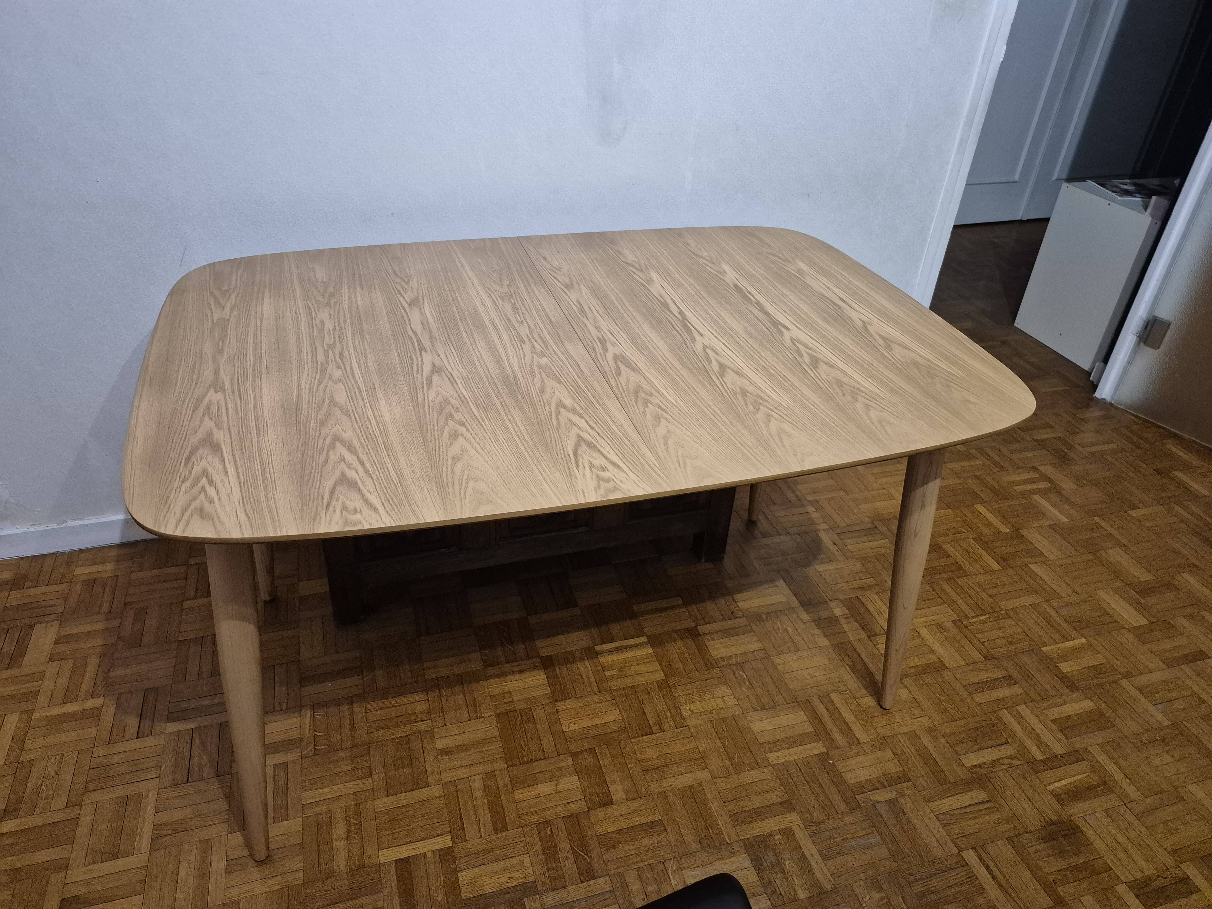 Son design épuré et sa finition noyer en font une table intemporelle. On s'aménage un coin repas dans un esprit nordique en accompagnant cette table extensible de chaises en bois. Pour une salle à manger tendance, on opte pour des chaises design dépareillées en métal, tissu ou velours.