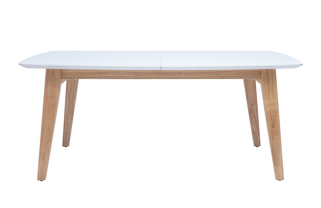 Table extensible rallonges intégrées rectangulaire en bois blanc et pied bois clair L180-230 cm FIFTIES livrée à assembler.