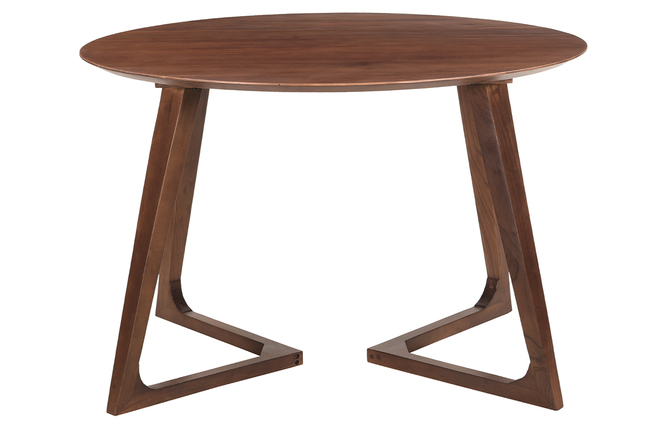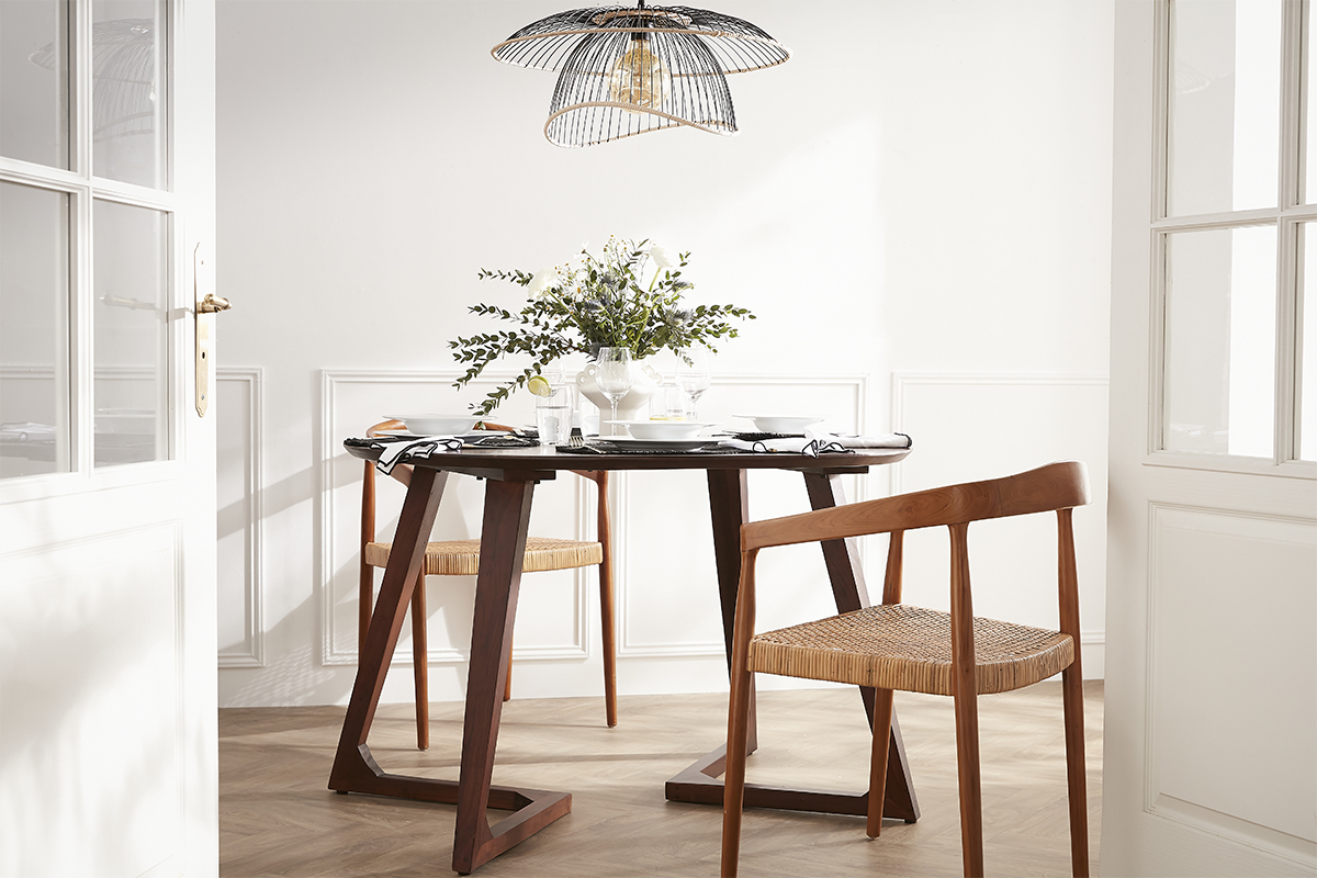 Comme sculptée, cette table affiche des lignes pures et sobres dynamisées par un singulier piètement. Le résultat ? Ultra graphique ! Signature atypique à fort caractère d'un coin repas, les férus de design en quête d'authenticité seront charmés par son total look bois foncé. Fabriquée à la main, chaque table met en avant un savoir-faire artisanal et se démarque par son aspect sans pareil. Bien que son style un tantinet vintage se prête volontiers à un intérieur subtilement rétro, le brun nuancé intemporel s'invitera avec douceur dans de nombreux univers déco.