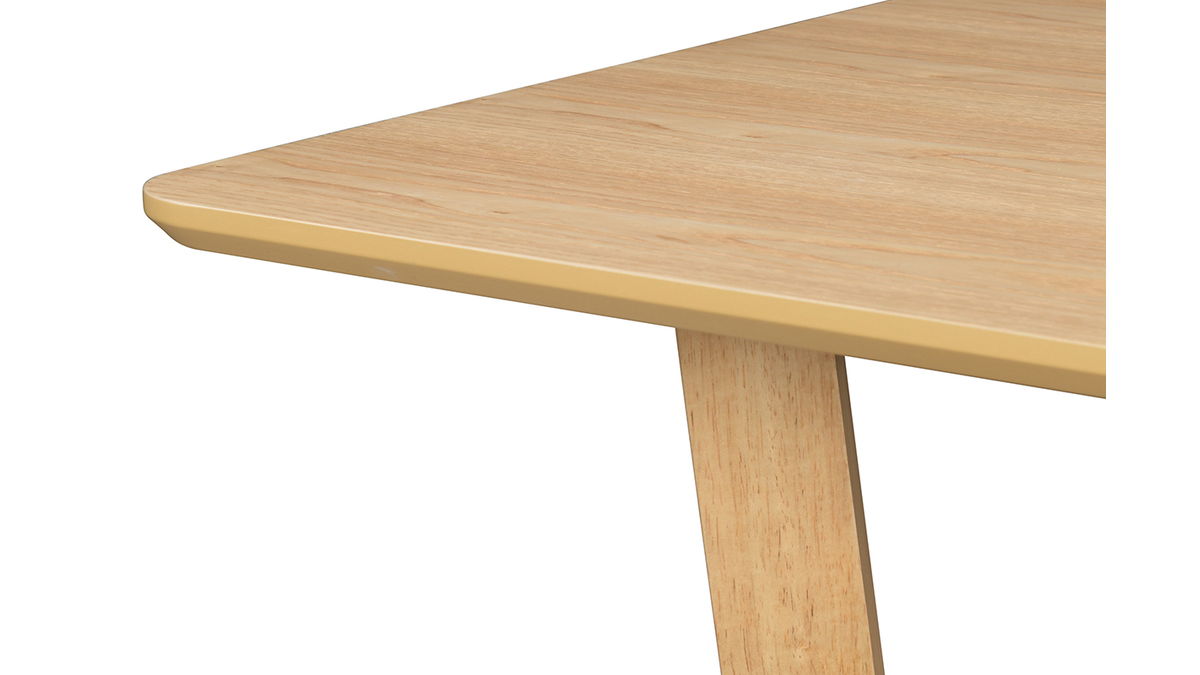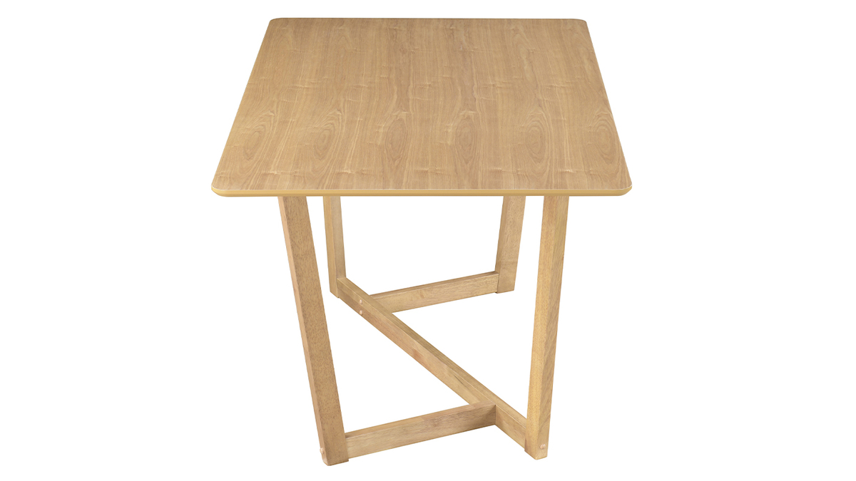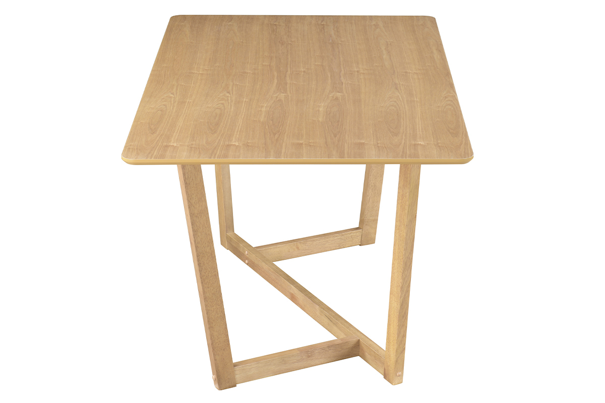 Singulière par son piètement, avec ses volumes épurés et ses lignes graphiques cette table pour 4 personnes ne manque pas de caractère. L'ensemble se pare de douceur avec un bois clair aux nervures finement apparentes. Empreinte de simplicité, cette table à l'inspiration nordique tiendra une place de choix dans une cuisine ou salle à manger à l'ambiance scandinave !