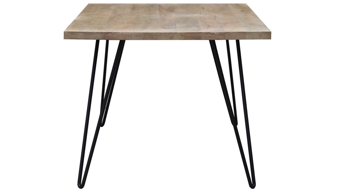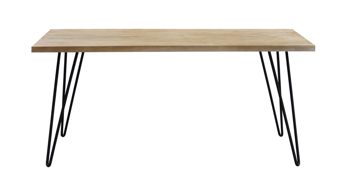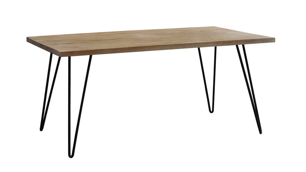 Longue de 160 cm, elle peut accueillir jusqu'à 6 personnes et offre un bel espace pour les dîners entre amis ou les déjeuners en famille. Son plateau en manguier montre de belles nuances. Conçue avec des techniques artisanales, la table à manger VIBES possède des finitions uniques, propre à une fabrication à la main. Associé à un piètement en épingle en métal noir, le bois massif contraste et fait de cette table à manger un élément lumineux qui réchauffera la pièce en un clin d'oeil. La table VIBES reprend les codes du style industriel avec élégance et apporte une vraie personnalité à la salle à manger tout en restant discrète.