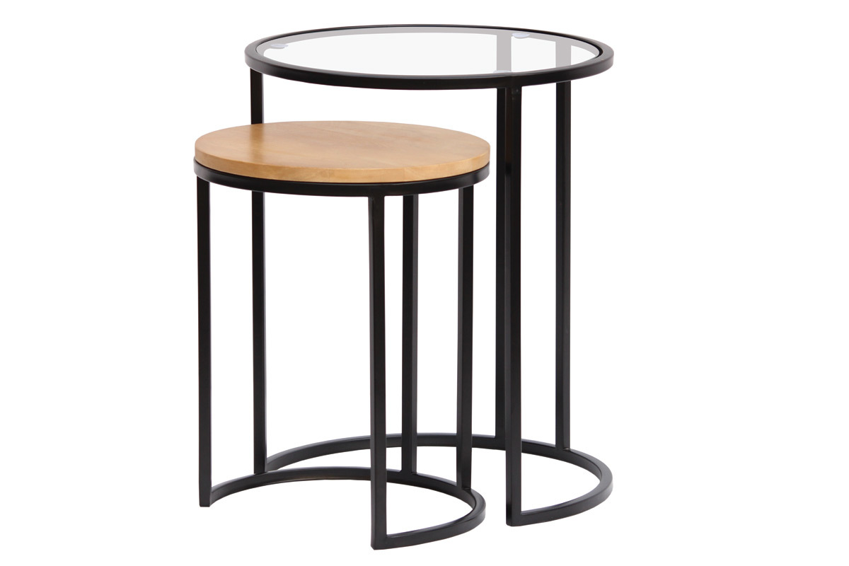 Ce beau mélange de matières est joliment mis en valeur par un design tout en rondeur. L'ensemble se veut chaleureux et ultra tendance ! À mi-chemin entre style industriel et contemporain, ces tables d'appoint gigognes apporteront incontestablement une touche de caractère à votre intérieur.