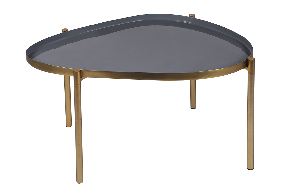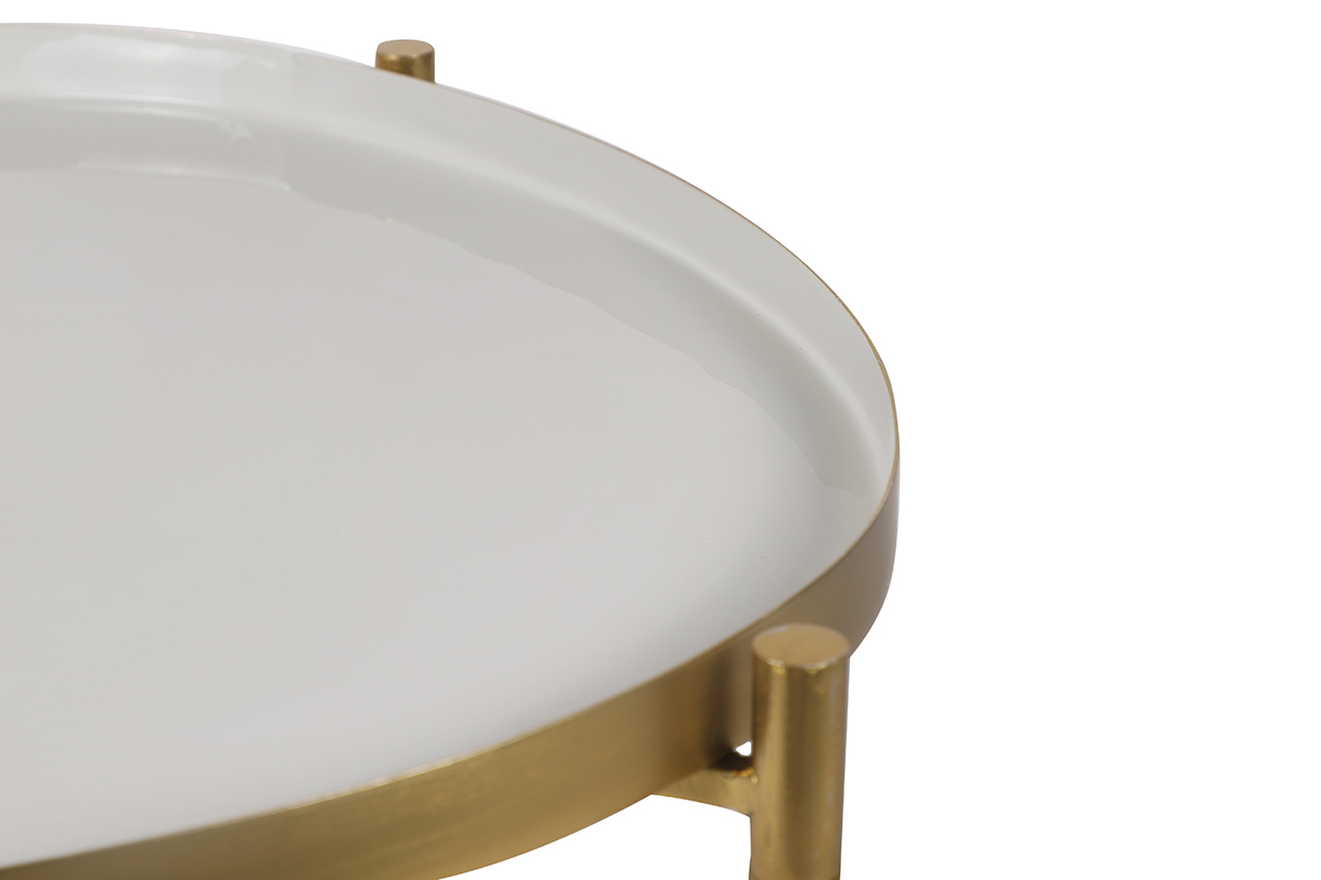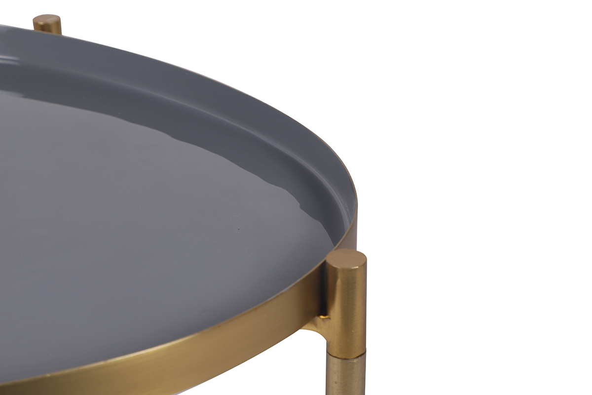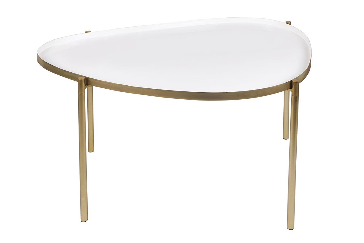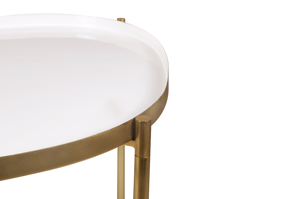 Matières : structure en acier finition laiton et plateau laqué brillant