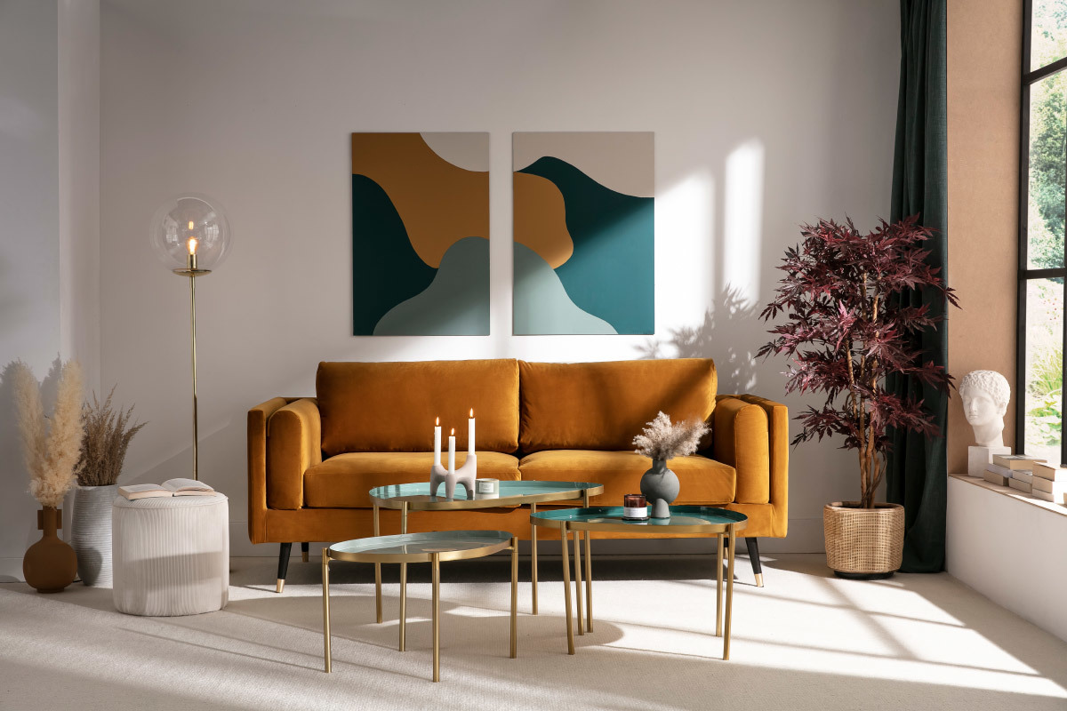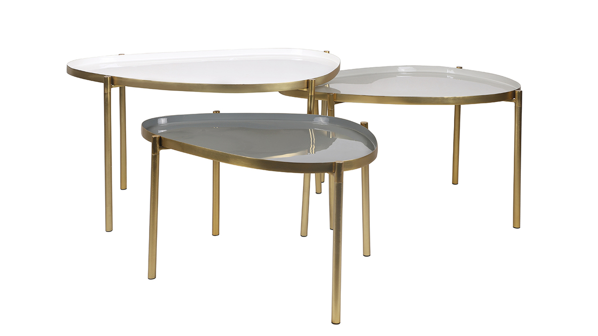 Les tables gigognes ZURIA, des formes organiques et élégantes qui composent un ensemble aérien.