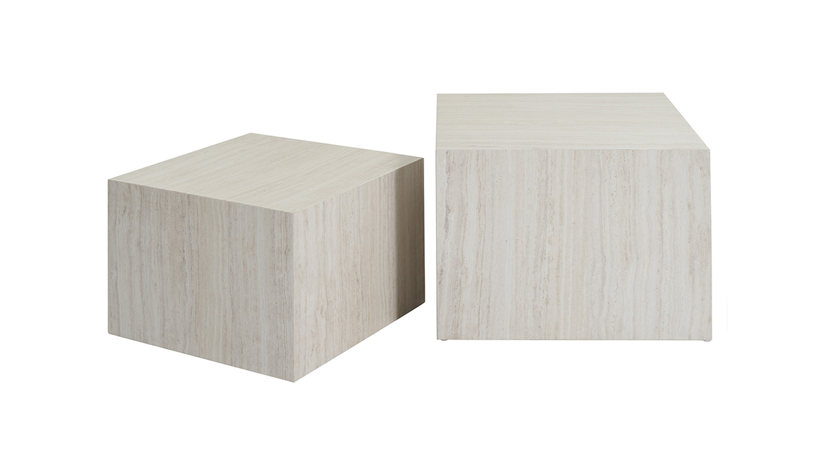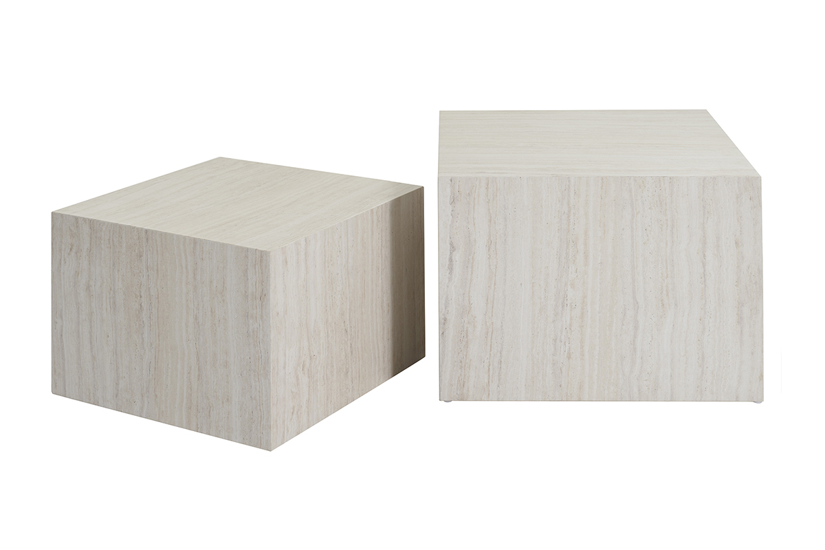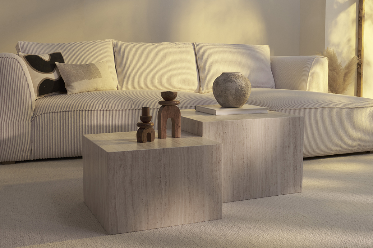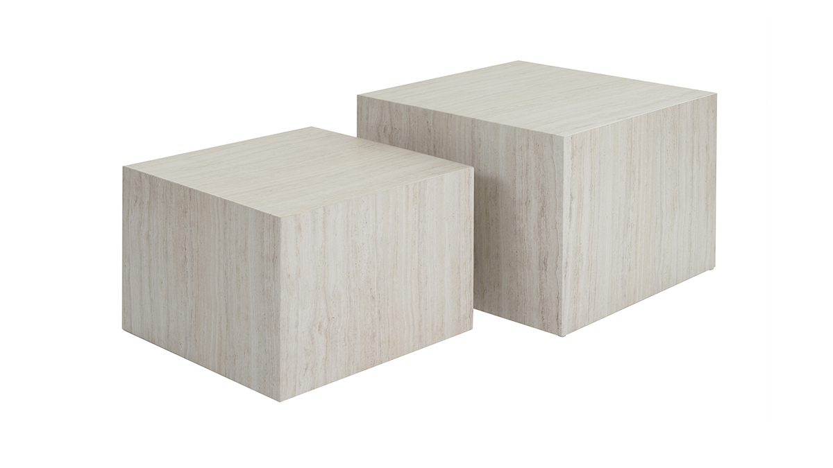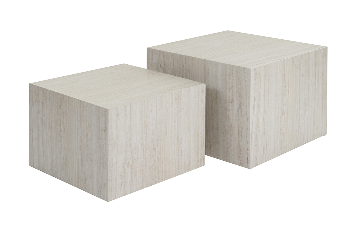 Le travertin revient sur le devant de la scène ! Les tables gigognes CALLA s'inspirent de cette pierre prisée pour son aspect brut et sa belle teinte naturelle pour former un ensemble purement design.