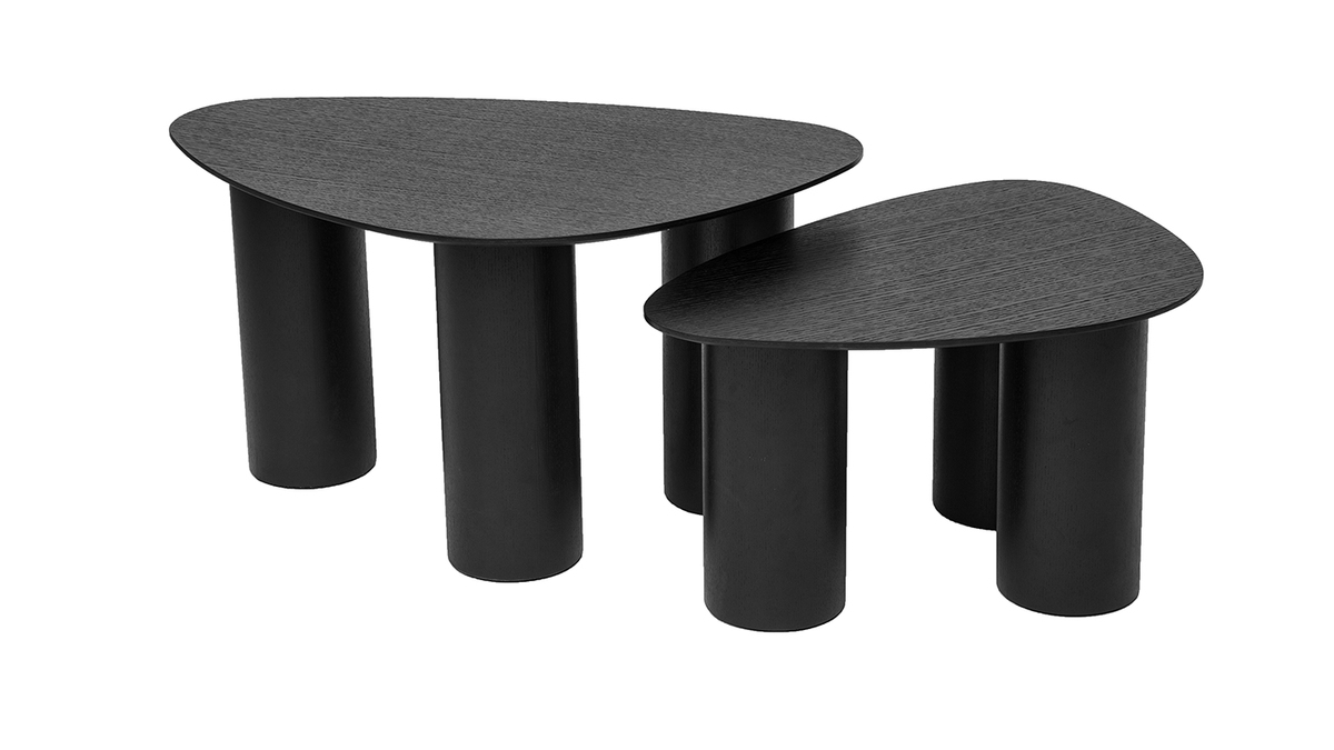 Chacune formée par un piètement cylindrique et un plateau ovale en panneaux de fibres de bois placage chêne teinté noir, avec leurs dimensions L69 x L47.5 x H37.5 cm et L85.5 x L54.5 x H44.5 cm, ces tables basses design se veulent résolument robustes - sans pour autant faire fi de la légèreté ! Faciles à déplacer, réunies ou dissociées, ces tables d'appoint en bois noir feront de votre pièce de vie, un havre de paix stylé et cosy. Inspirées et inspirantes, les silhouettes douces et poétiques des FOLEEN dynamiseront l'espace et attireront sans nul doute tous les regards !