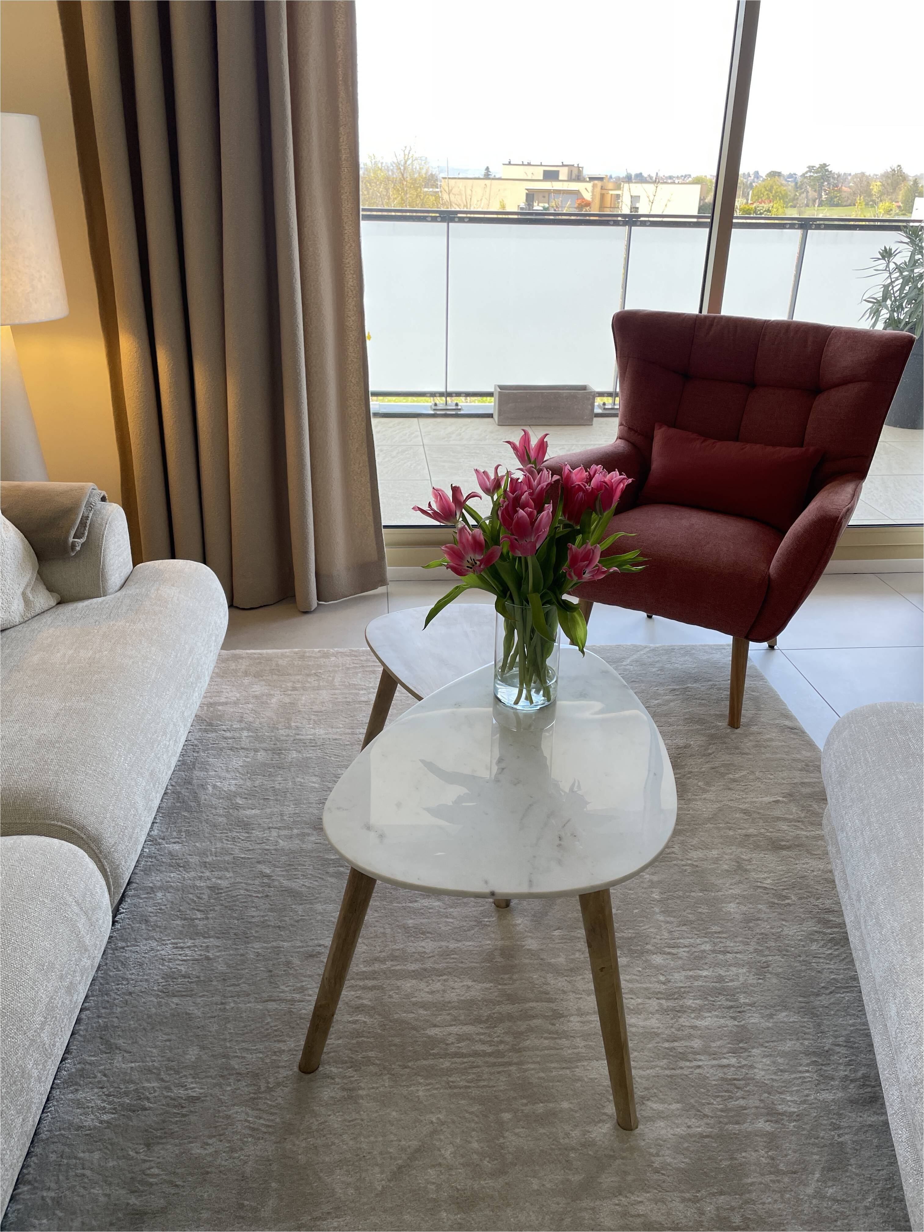 J'aime jouer avec les matières et je trouve qu'associer le bois au marbre permet d'obtenir une composition équilibrée. Ainsi, les deux tables EVY se complètent parfaitement : celle en marbre apporte le côté chic et celle en bois vient réchauffer l'ensemble.