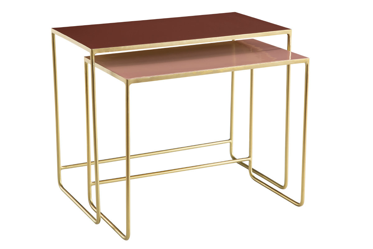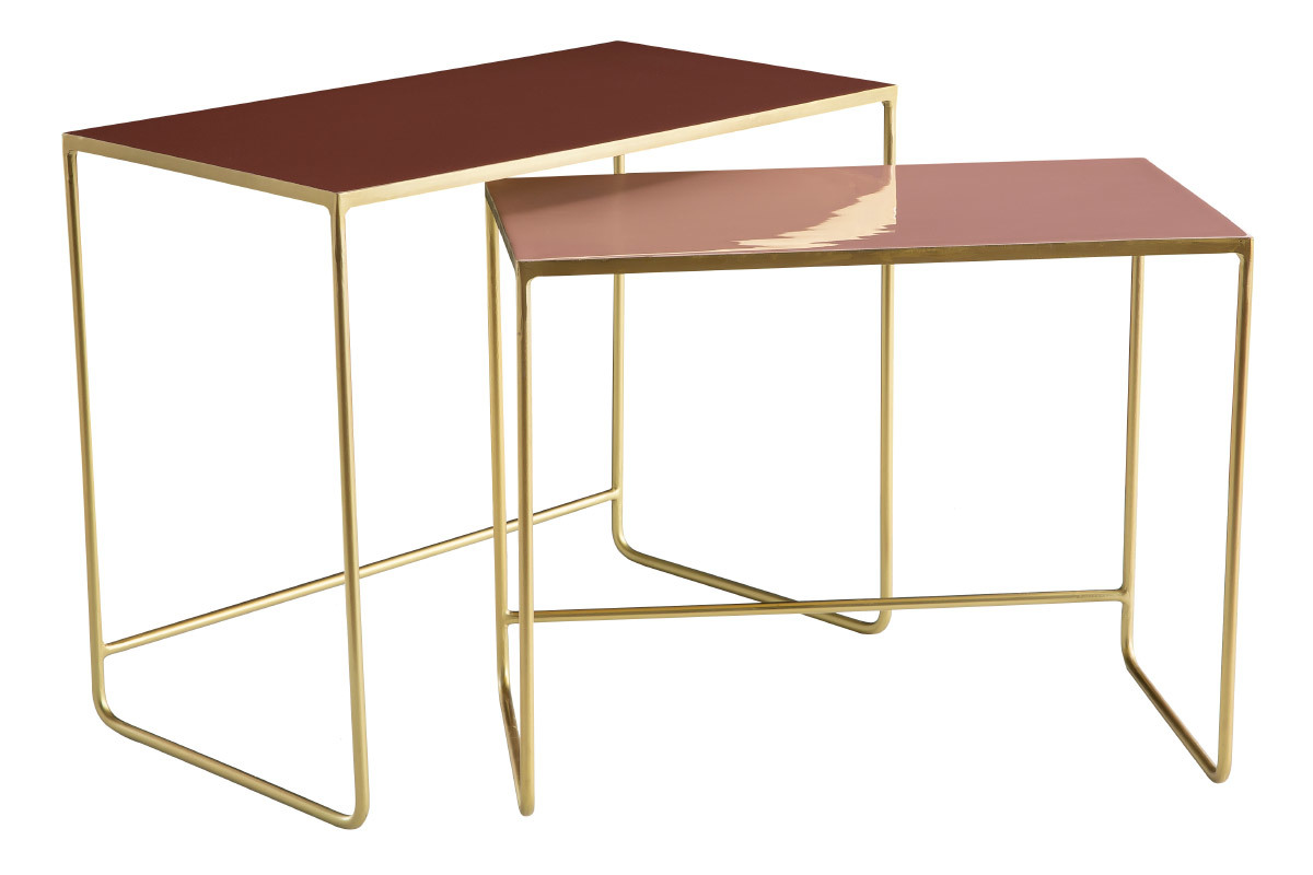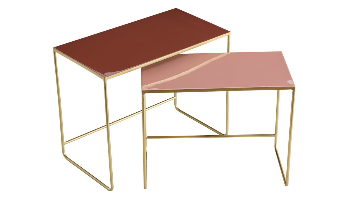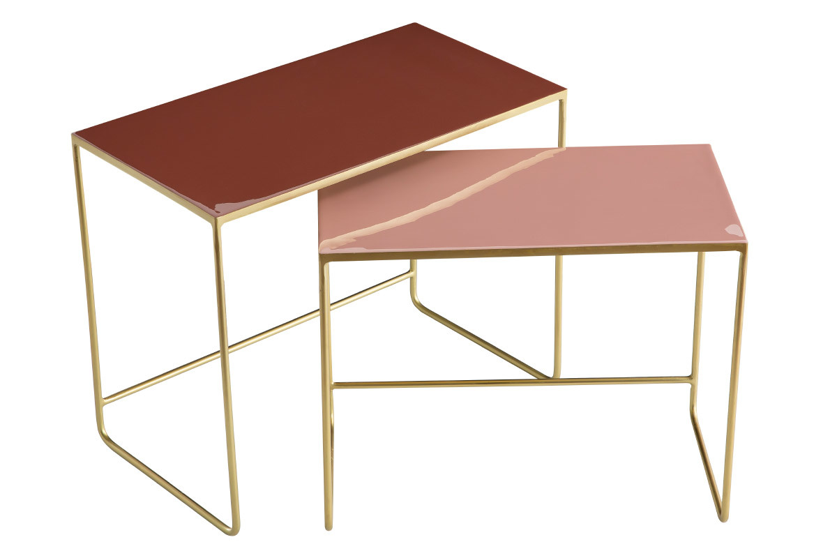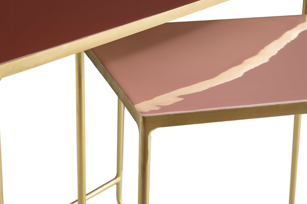 Ces tables gigognes sont des pièces uniques réalisées artisanalement. Fruit d'un savoir-faire particulier, elles possèdent tout ce qui fait la beauté des pièces travaillées à la main. Avec leur structure en métal doré et leur plateau émaillé, les tables WESS sont des objets déco à part entière. On aime particulièrement leur design aérien et le sublime rendu des aplats colorés. Ce sont des pièces raffinées et glamour qui s'intègrent aussi bien dans les intérieurs modernes que les séjours d'inspiration vintage.
