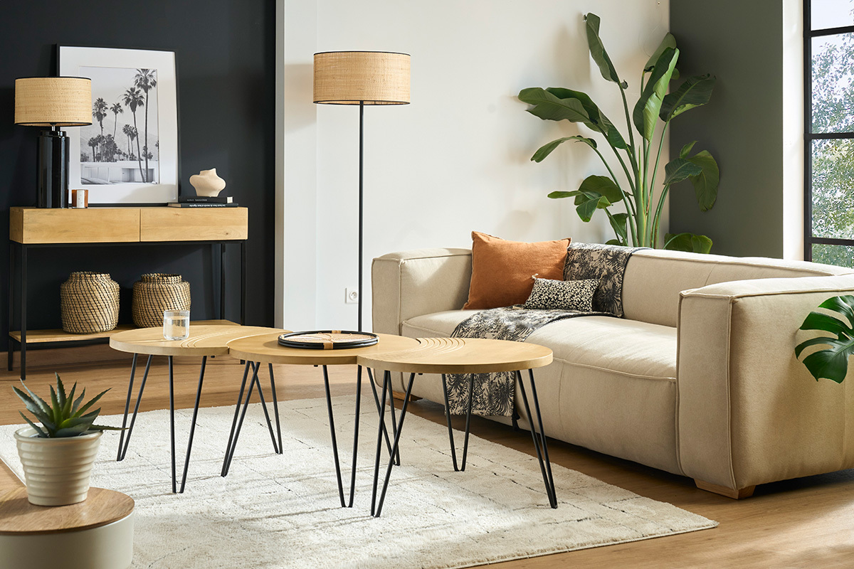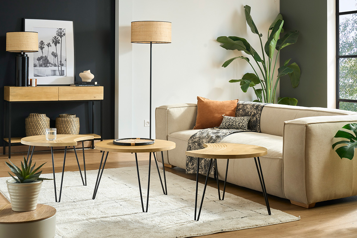 Accompagné d'un beau canapé et d'un fauteuil confortable, ce lot de tables basses en bois massif saura trouver sa place dans votre séjour.