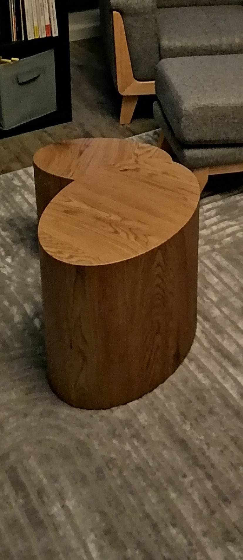 Une ligne tout en courbes, un joli décor chêne, une base pleine... ces deux tables basses sont de belles pièces design et chaleureuses. Leur charme réside dans l'association d'une forme ovale et d'un support sans pied contemporain. Ce mariage offre un rendu moderne tout en délicatesse.