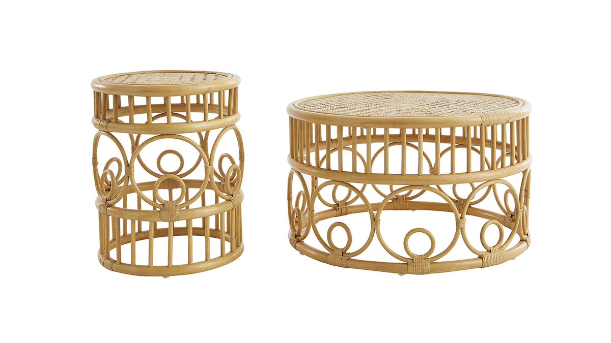 Esprit graphique et poétique. Équilibre parfait entre passé et tendance déco actuelle, ces tables basses en rotin forment un élégant revival déco. Fabriqué en rotin courbé et bambou tressé, ce mobilier au caractère authentique va combler les amateurs de déco vintage !